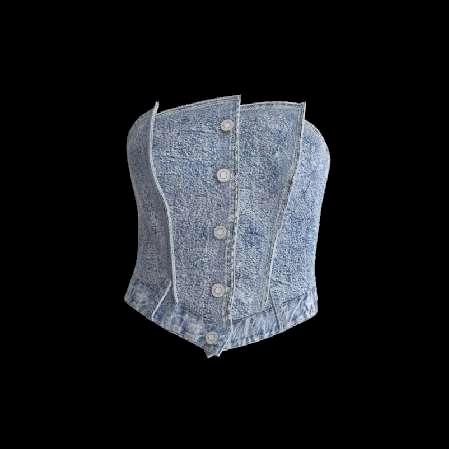To communicate the sustainability of the used materials, special hangtags have been made. Two different options were created to distinguish the different composition of denim pieces and rib top made with organic cotton.