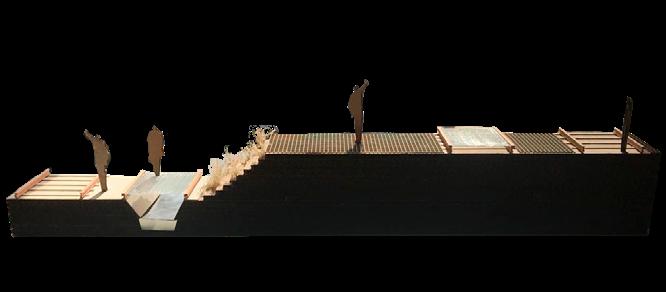 IN:CH Academy, de Bangalore. O workshop foi resultado de 15 dias viajando por Chandigar, Jaipur e Ahmedabad pesquisando a relação dos cidadãos indianos com o espaço público para gerar um espaço de lazer e catalisador de encontros urbanos sob o viaduto Wheelers. O partido surgiu de uma equipe reduzida (4 alunos internacionais) da qual eu conduzia: um laço que rodopia os pilares sob o viaduto, permitindo que o projeto futuramente se expandisse. Propõe-se uma área de lazer para os moradores vizinhos aproveitarem de seu tempo livre jogando jogos de mesa, tradição indiana, ou fazer refeições num curto intervalo de almoço, além de ser uma área de brincadeiras para crianças. Além da construção propriamente dita participei da concepção do projeto paisagístico do mobiliário, demanda da população.