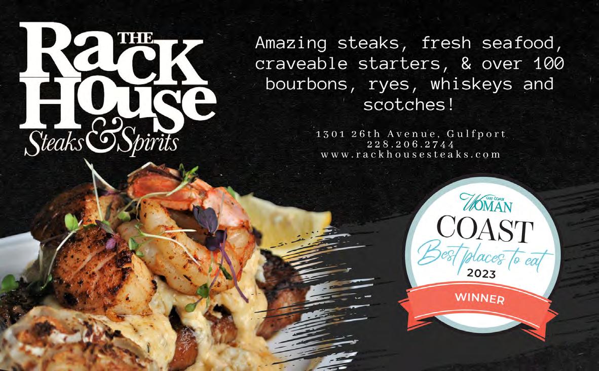 Located in D’Iberville, the awardwinning restaurant provides a fun atmosphere that’s perfect for a family night out or a romantic dinner for two. The dining room is spacious and comfortable, with plenty of tables and booths for groups of all sizes.