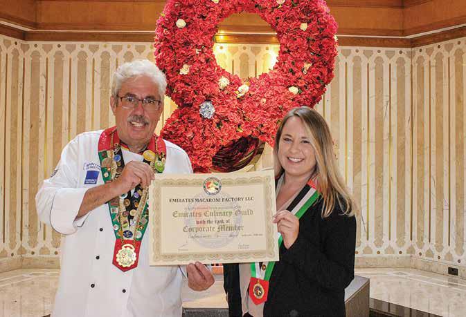 Ashlea Daniel, Business Development Manager, Emirates Macaroni Factory - MADA FMCG, receiving Emirates Culinary Guild Membership certificate from ECG President Chef Uwe Micheel