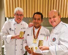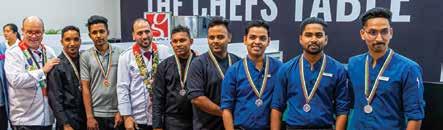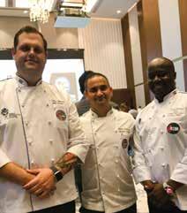 THE CHEFS TABLE at The Hotel Show Dubai is brought to you by The Emirates Culinary Guild (ECG) and dmg events. The tournament takes place over the three days of the exhibition, during which nine teams from the region's leading hotels/ restaurants compete and highlight their culinary skills. It is a head-tohead competition utilizing three fully-appointed kitchens that are purpose-built at the venue. Judges score for mise-en-place, culinary skills, presentation, and, of course, taste.