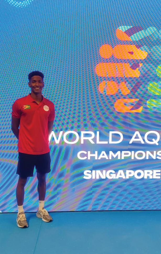 GOLDEN boy Raekwon Noel has again lowered the country’s national record in the men’s 100 metres butterfly with a time of 53.91 second at the World Aquatics Championships in Singapore on Friday.