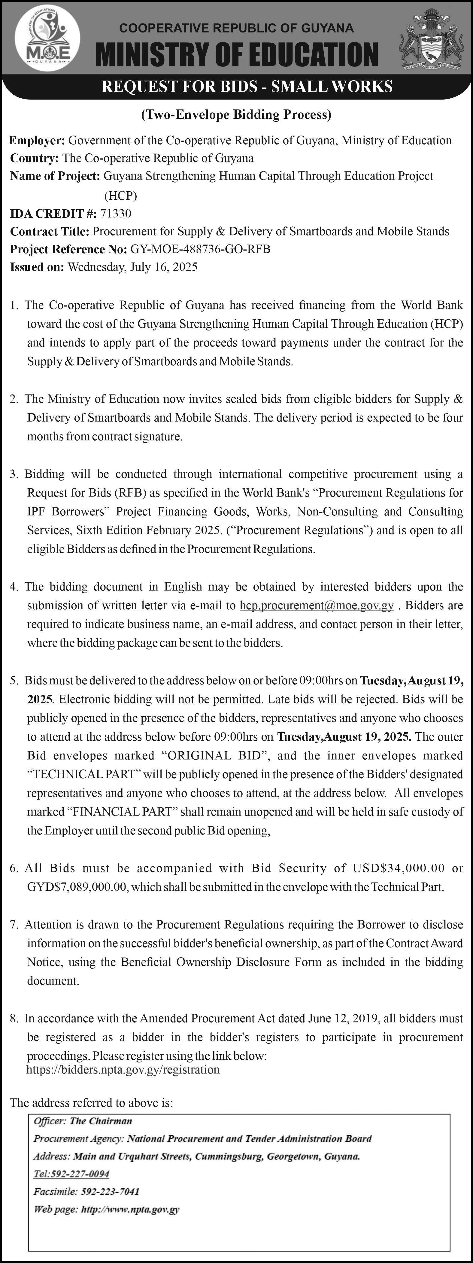 developing smart classrooms in schools across Guyana, while placing renewed focus on technical and vocational education.