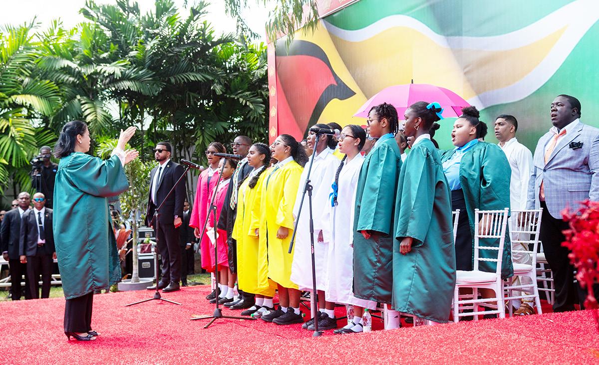 izens thronged the manicured lawns of State House in Georgetown, their voices rising in unison, as stringed and other musical instruments played the country’s national anthem and other patriotic tunes.