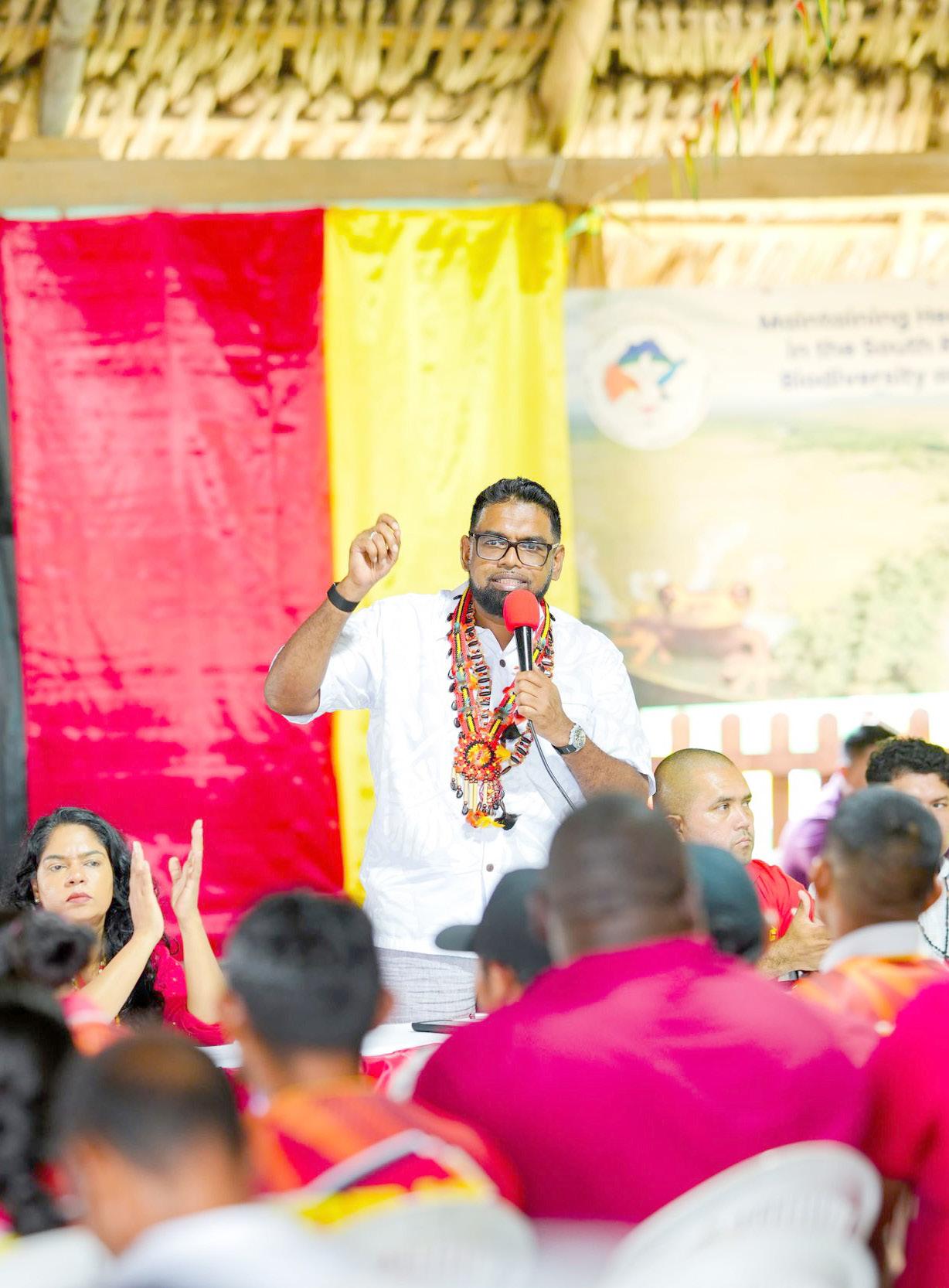 Speaking to residents during an engagement at Aishalton, Region Nine (Upper Takutu-Upper Essequibo), the Head of State