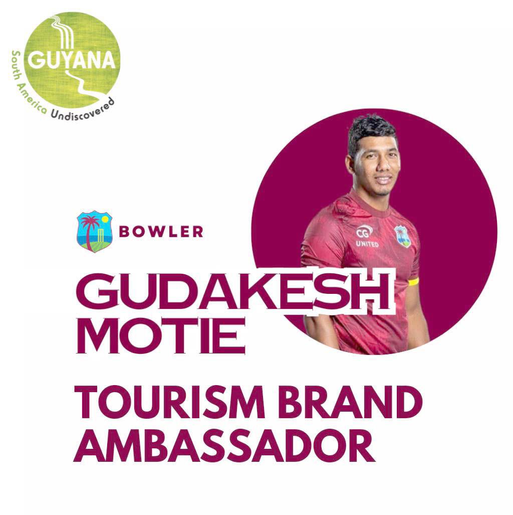 West Indies and Guyana's left-arm spinner, Gudakesh Motie, has been appointed the official Tourism Brand Ambassador by the Guyana Tourism Authority (GTA), the organization announced on Tuesday.