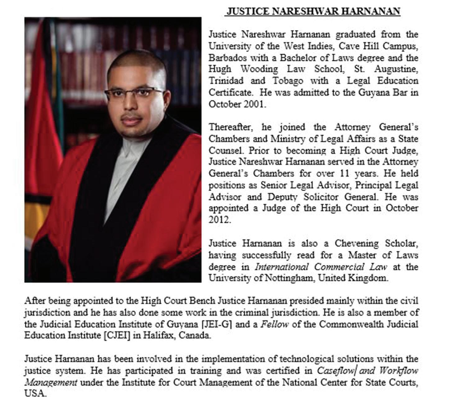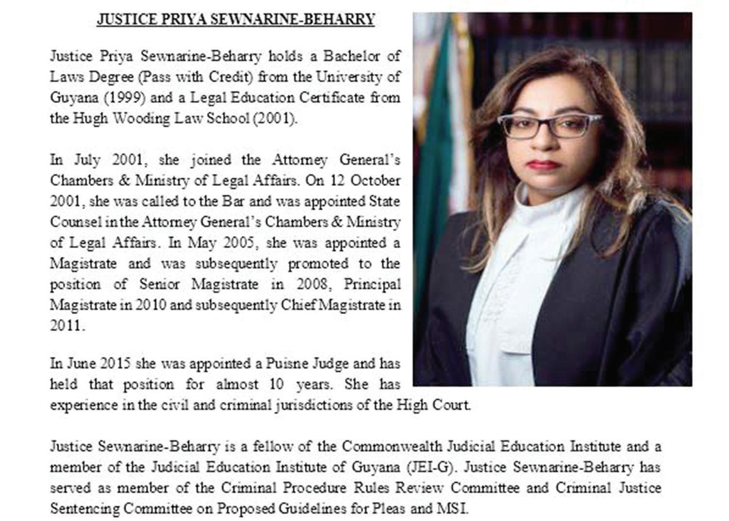 office and the need to address outstanding matters, two of those persons will be taking the oath of office at a later date . They are Justice Damone Younge and Mr. Rafiq Khan, SC,” the release said. Further, it said, “History is being made in Guyana as this is the first time in the history of our courts that so many judges will be appointed at one time to the Court of Appeal.”