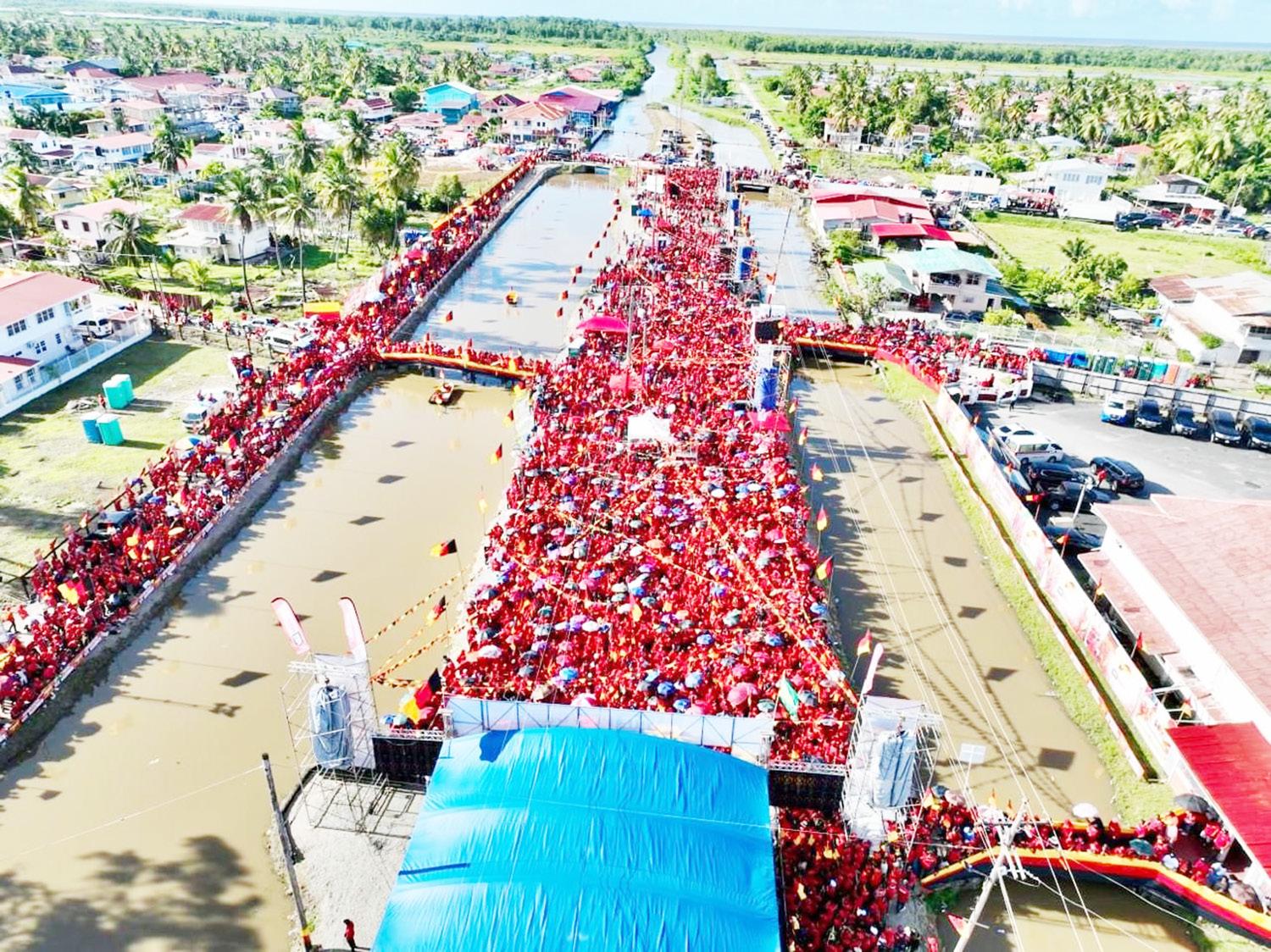 was on Sunday blanketed by scenes of fiery red as thousands of Guyanese from all walks of life gathered under the blazing afternoon sun for a singular purpose, answering President Dr. Irfaan Ali’s call for unity, progress, and consolidation.