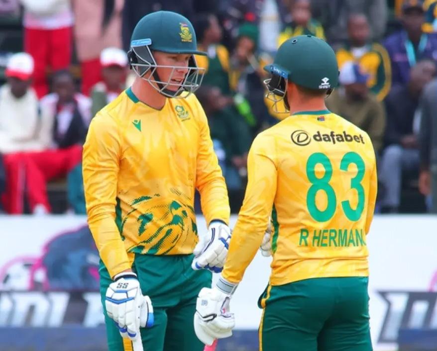 Corbin Bosch and Nandre Burger stifled Zimbabwe with the ball, and rookie Rubin Hermann struck his maiden T20I fifty to secure South Africa's place in the T20I tri-series final - while knocking the hosts out - in a seven-wicket win in Harare.