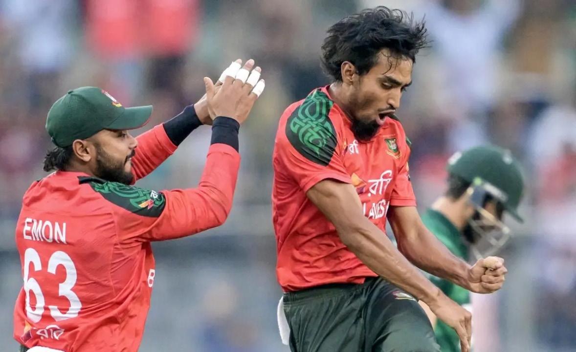 Pakistan then lost three wickets in three balls in the final over. Taskin took two while there was a third run-out as the visitors were bowled out for 110.