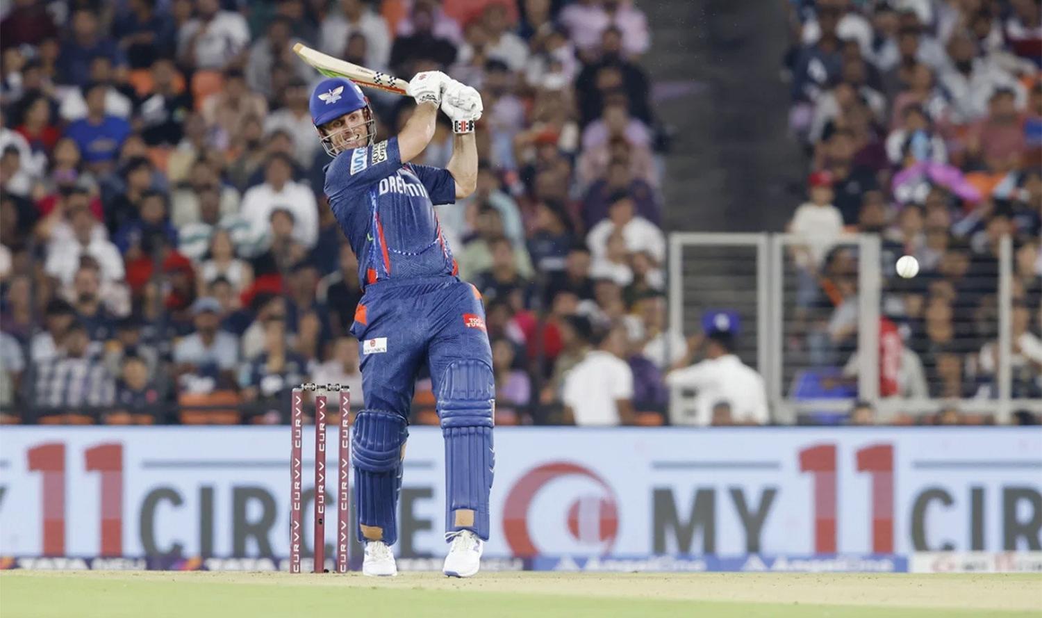 action but Hawk-Eye deemed it to be a legal delivery. It showed the ball would have been 1.11 metres high at the batting crease, 2cm below Markram's waist standing upright. In between, Marsh and Markram had a few mishits and also found some boundaries. By the end of the powerplay, LSG had reached 53 for no loss.
