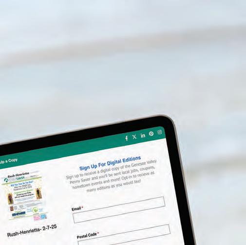 Sign up to receive a digital copy of the Genesee Valley Penny Saver, Lake Country Pennysaver, and/or the Southern Tier Shopper. Enjoy local jobs, coupons, hometown events, and more from your community, emailed right to you to read at your convenience. Opt-in to receive as many editions as you would like!