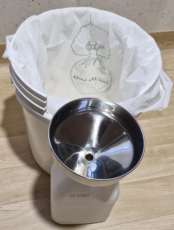 Commercial composting toilets are being sold for between 500 and 2,000 US dollars. It sounds pricey, but it is still cheaper and easier than installing a septic tank. Also, you can do one yourself at a very low cost. You can use wood for the frame building, but you can also use an inexpensive portable camper toilet as an easy option. If you merely place a bucket and a bottle for urine inside the portable toilet, your compost toilet is finished! Instead of a urine separator, you can use a funnel. Bio-degradable plastic bags can be put into the bucket for easy use, but it is really not necessary since it is easy to empty and clean the bucket because the covering materials keep the inside dry. The urine can be used in two weeks for garden plants after being diluted in water for