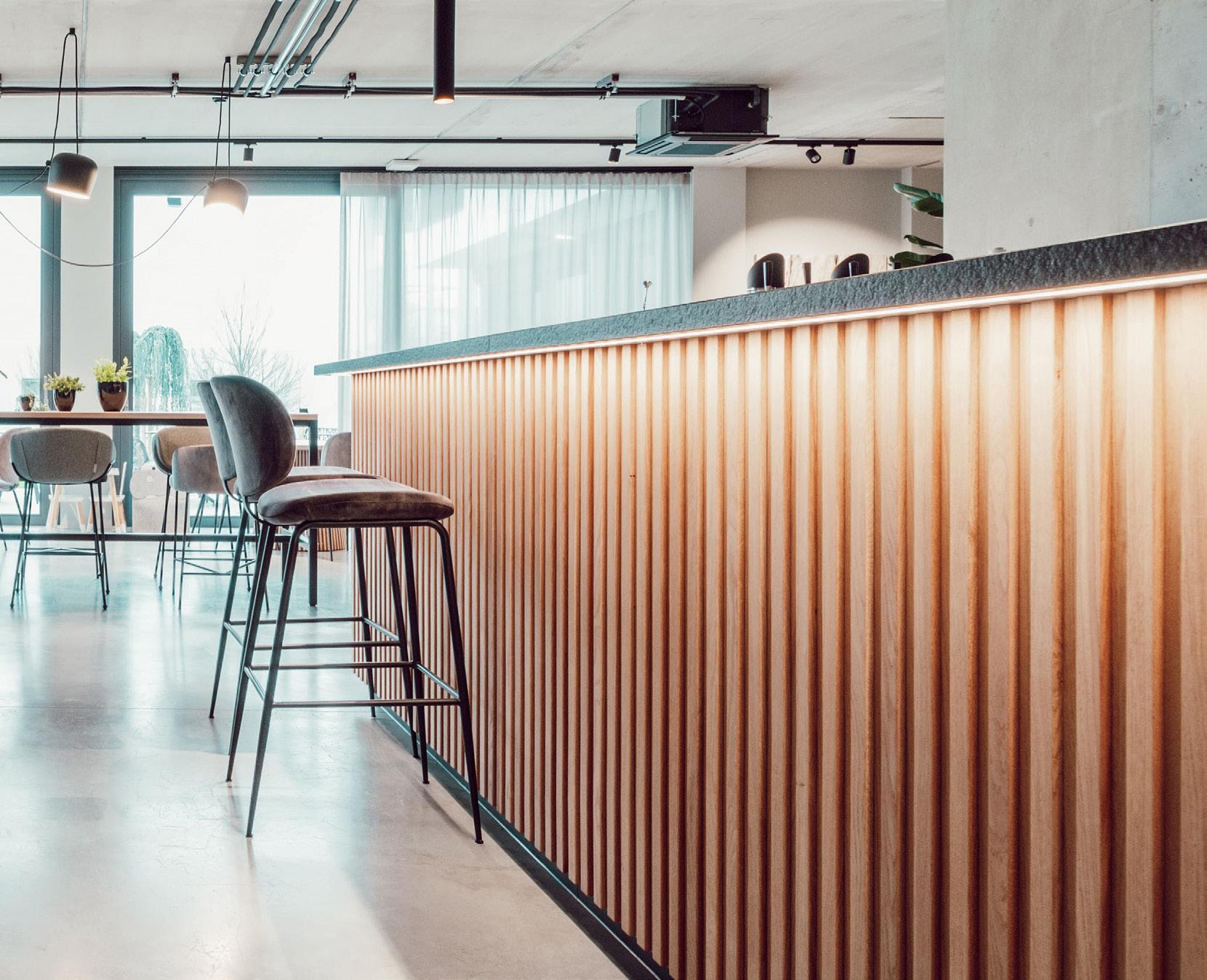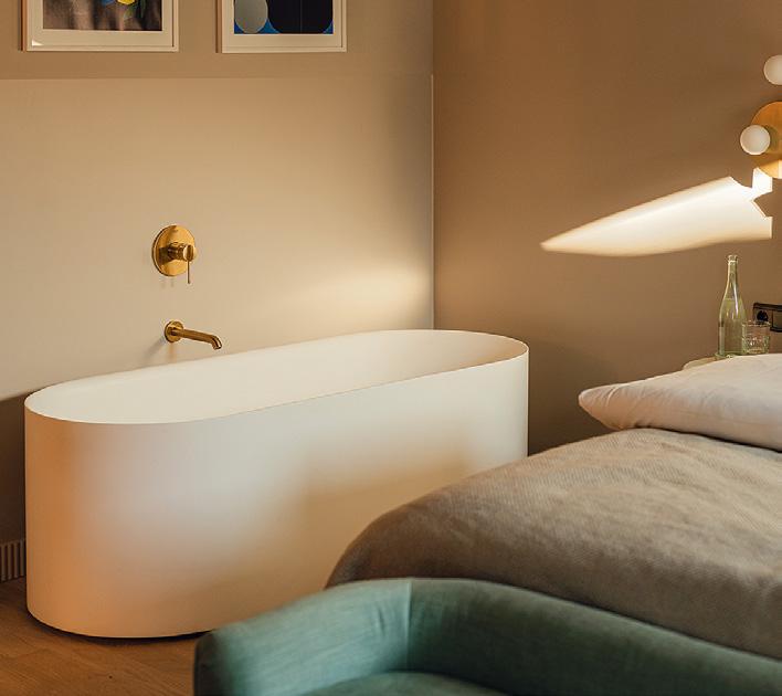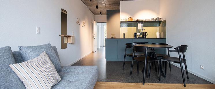 wurden inklusive Möblierung in der eigenen Schreinerei von Bachhuber Contract gebaut und auf der Baustelle wie Bausteine montiert – Plug-and-Play im besten Sinne. „Ein gutes Beispiel für die moderne Kettenhotellerie im Budget-Segment, das zeigt, wie schnell und effizient moderner Hotelbau sein kann“, so Postner. „Gerade sehr spannend sind zwei eher ländlich-urbane Projekte für die Marke Stuub“, erzählt Martina Postner. „Diese breiten sich aktuell im Schwarzwald aus. Sie kaufen alte Bestandsgebäude auf und gestalten daraus individuelle Ferienwohnungen. Zwei dieser Projekte laufen aktuell bei uns in der Schreinerei – eines am Schluchsee, eines am Titisee.“