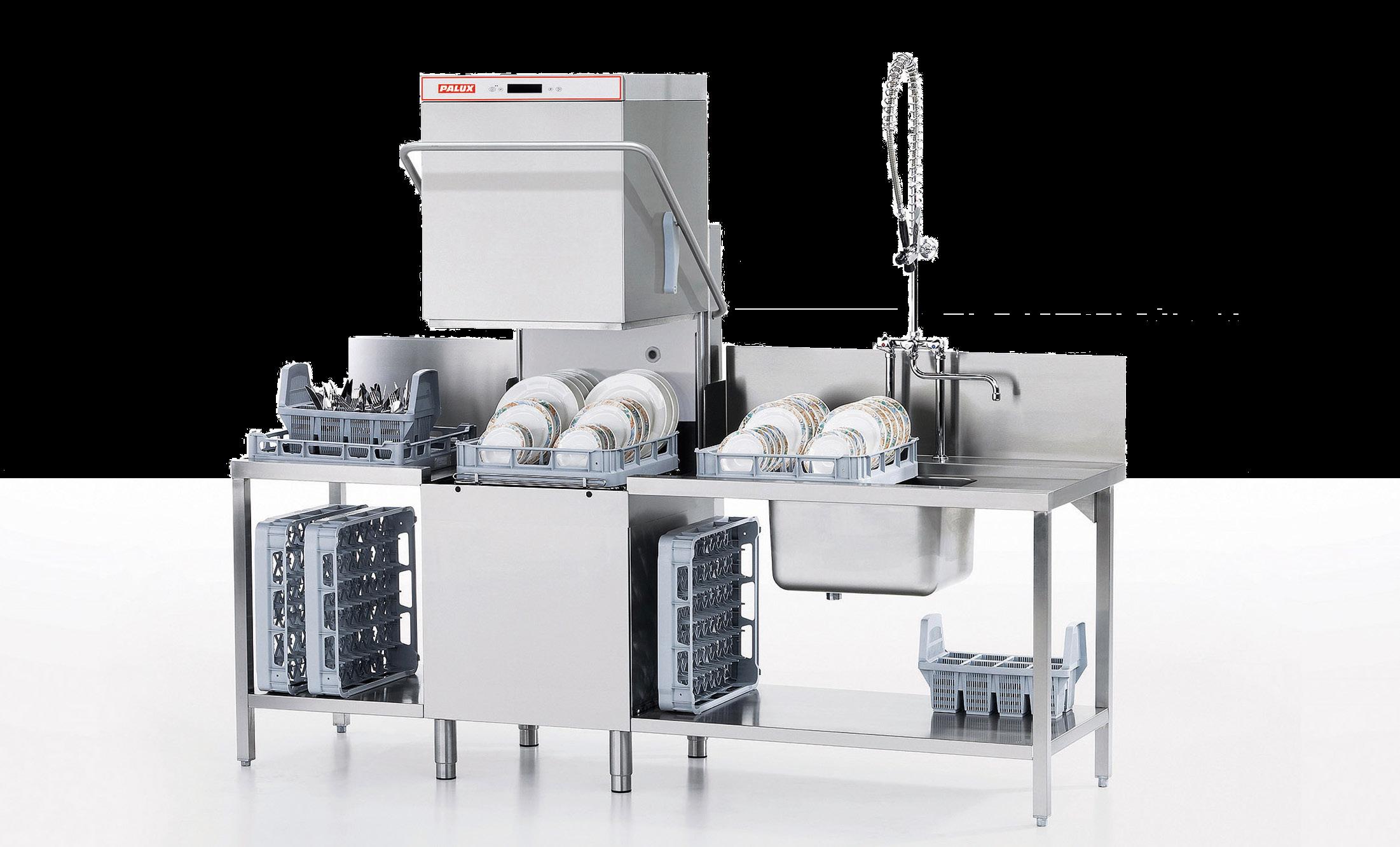 Das Modell GSD 502-TE-O der Palux-Serie GSD 502, die insgesamt vier Ausführungen umfasst, verfügt neben den drei Standardspülprogrammen und der Selbstreinigung über acht Sonderprogramme etwa für Besteck und Glas, über je ein Intensiv-, Dauerund Thermodesinfektionsprogramm, eine Anwendung mit geringerem Energieverbrauch, ein Wasserwechsel- und ein Spülprogramm für Osmosewasser. Außerdem hat die Maschine eine Wrasenwärmerückgewinnung mit Wärmetauscher aus Edelstahl. Damit eignet sie sich für den Betrieb mit vollentsalztem und Osmosewasser.
