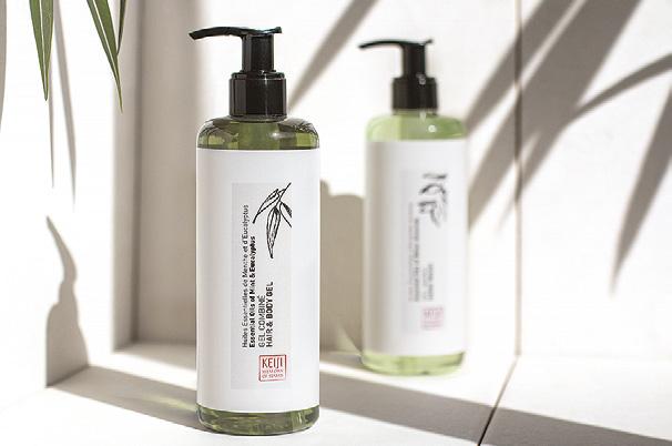 Groupe GM hat seine Marke Keiji mit neuem Design auf den Markt gebracht. Keiji, Memory of Senses ist eine Aromatherapie-Reihe, die vom Orient inspiriert ist und mit natürlichen Zutaten entwickelt wurde. Um die Verwendung ätherischer Öle zu betonen, sind die Produkte mit Illustrationen der Inhaltsstoffe verziert. Das Haar- und Körpergel ist mit ätherischen Minz- und Eukalyptusölen angereichert, das Duschgel mit Wacholder und Koriander. Rosmarin und Salbei sind in dem 2-in-1-Shampoo und der Pflegespülung zu finden, die Körperlotion setzt auf Zedern- und Sandelholz. Die Produkte sind in 40 Millilitern-Flaschen aus recyceltem Kunststoff erhältlich. Die 20 Gramm peelende Seife und die schonende Seife mit Bittermandel sowie 35 Gramm Badesalze mit ätherischen Ölen von Kamille und Jasmin kommen ebenfalls in 0-Prozent-Plastikverpackungen. Im Einklang mit dem Programm Care about Earth der Groupe GM gibt es die Linie auch in 300-MilliliterEcopump-Spendern aus recyceltem Kunststoff. Eine 28 Gramm Badetablette rundet das Sortiment ab. www.groupegm.com