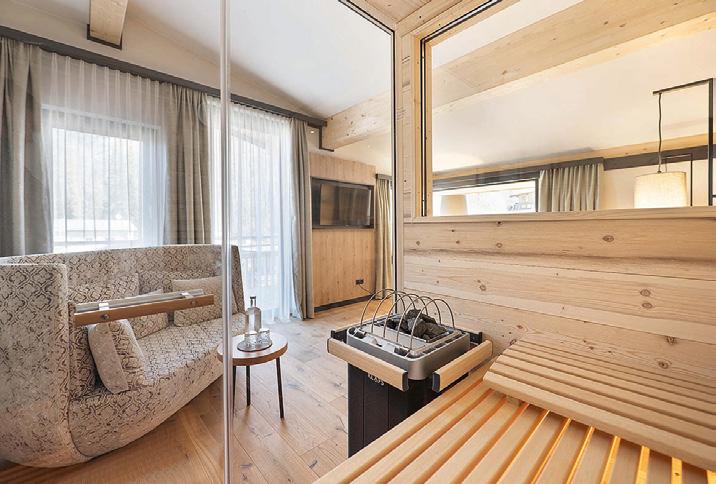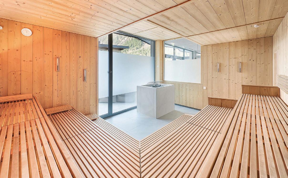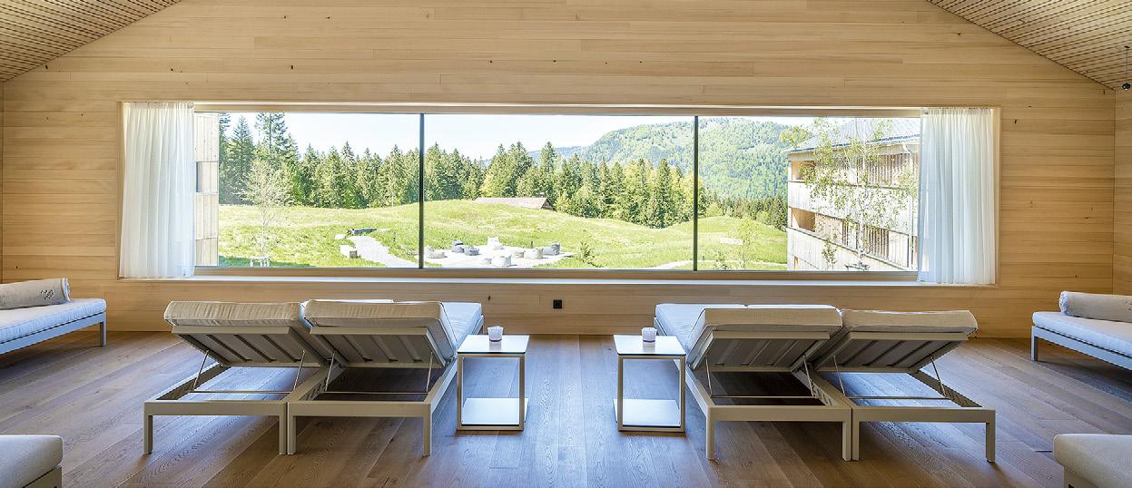 Tal fließt, sorgen für einen Bezug zur Natur und eine beruhigende Stimmung“, erklärt Andrea Stein, Sales & Marketing-Direktorin der Egerner Höfe. Der hohe Glasanteil sorgt in Kombination mit Spiegelelementen dabei für einen großzügigen, natürlichen Lichteinfall, Transparenz und eine offene, freie Atmosphäre, ohne an Behaglichkeit zu verlieren. Denn gleichzeitig bietet das Spa eine Vielzahl an Rückzugsmöglichkeiten und Ruheräumen mit Blick in den Park und auf den Wallberg. „Hier finden Gäste zudem raumhohe Glaskuben, die mit immergrünen Eiben bepflanzt sind und so als natürlicher Raumtrenner fungieren.“ Und Michael Bauer, Leiter Großkunden/Key Account Manager bei Klafs: „Mit dem Mangfall-Spa haben wir es geschafft, der markanten Landschaftsverbundenheit der Egerner Höfe einen angemessenen Rahmen zu verleihen und naturnahe Ästhetik mit moderner, hochqualitativer Funktionalität zusammenzubringen.“
