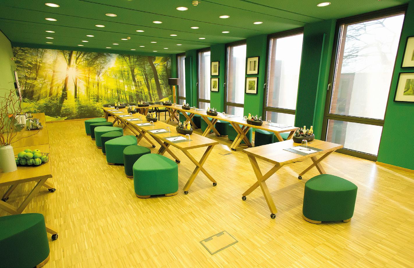 Die Tagungsräume punkten alle mit viel Licht und Naturausblicken Tenne: Tagen, Treffen, Feiern. Die gemeinschaftlichen Bereiche sind Orte der Begegnung