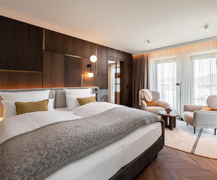 den Themen dieser Ausgabe, und die sind vor allem hell beleuchtet. Viel Licht im Alten Bräuhaus in Gaildorf (Seite 10–13), viel Licht im Atlantic Hotel Heidelberg (ab Seite 44) – und Gala können wir auch! Ob wir zum englischen Afternoon Tea in fünf Luxushotels laden (Seite 24–27) oder dem Genussautor Peter Jauch vier Seiten für sein Thema Champagner einräumen (ab Seite 28), irgendwie bekommen wir die dunkle Jahreszeit schon mit Anstand herum. Gearbeitet wird später! Natürlich im Hotel, und deshalb widmen wir uns ab Seite 38 ausführlich den Workspaces und Konferenzräumen, die viele Häuser seit Corona mit Gewinn eingerichtet haben.