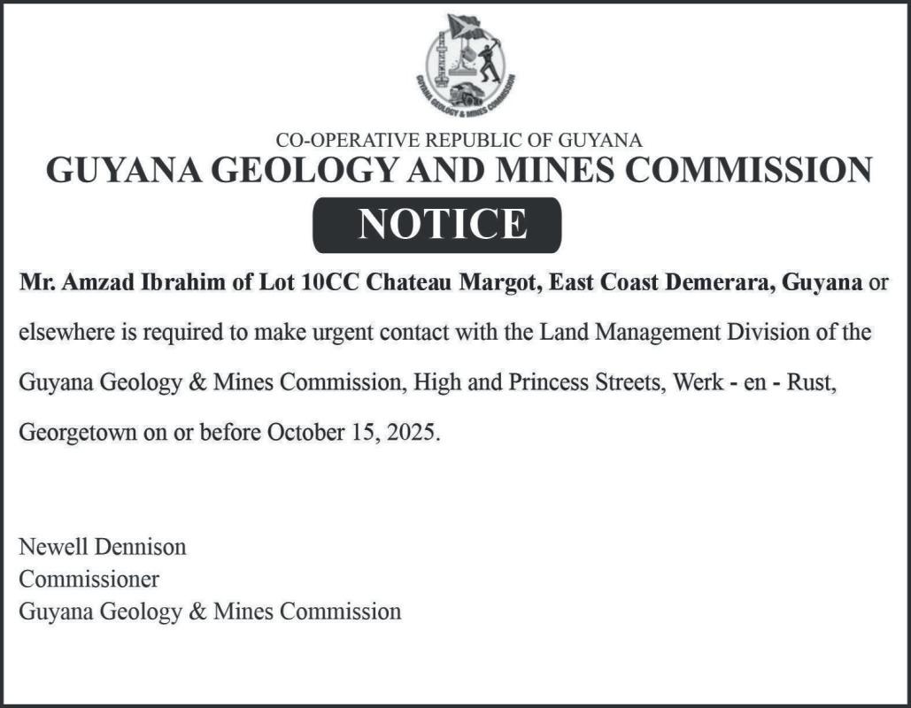 PrintedandPublishedbyNationalMedia& PublishingCompanyLtd 24SaffonStreet, Charlestown,Georgetown,Guyana.