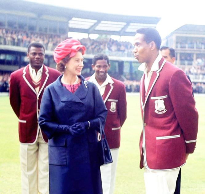 Her Majesty Queen Elizabeth with Gary Sobers before the commencement of the Lord’s test.