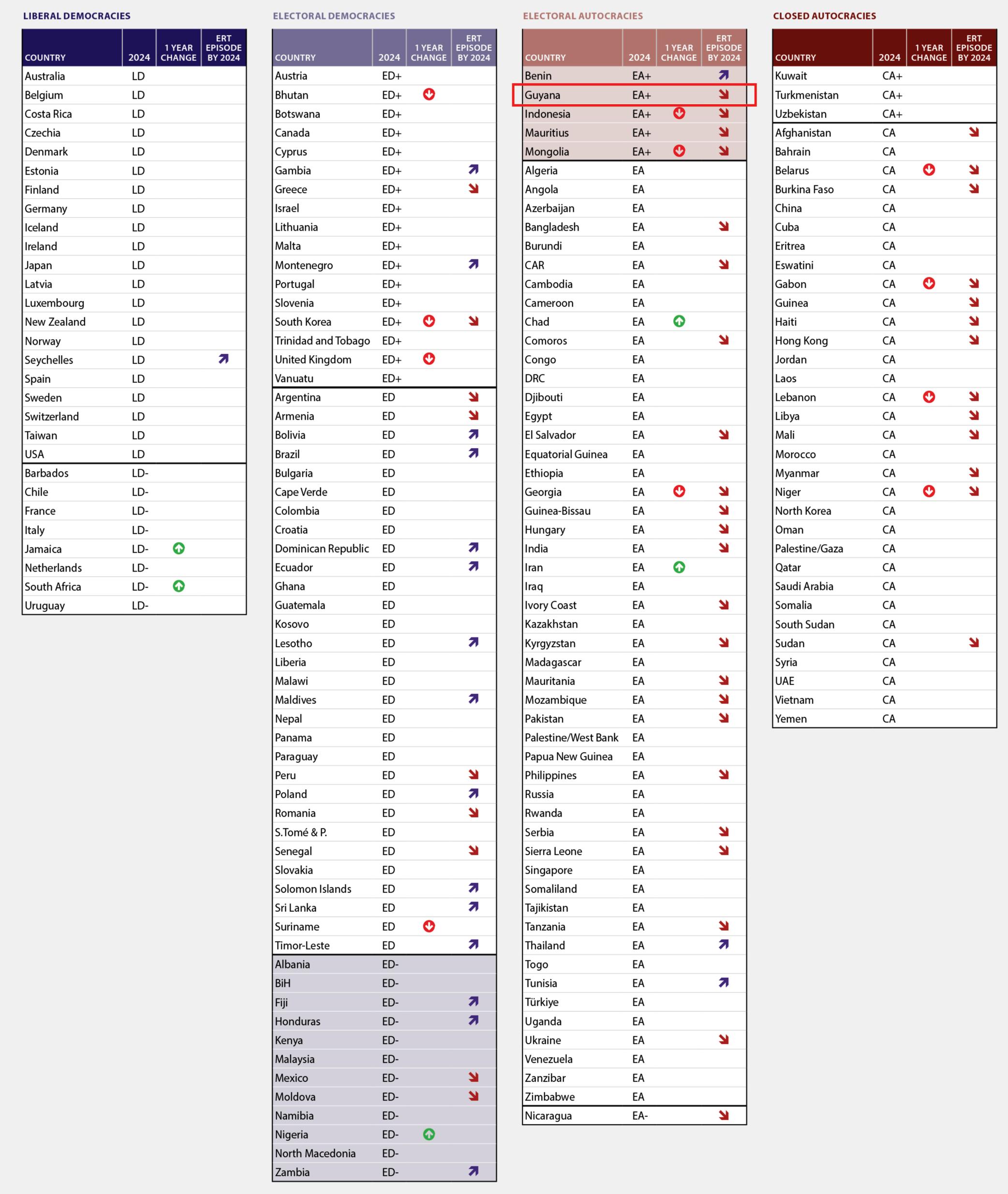 Under the watchful, progressive and most astute leadership of President Dr Irfaan Ali, Guyana has been demoted to being an ‘autocratic’state by the 2025 report of the V-Democracy Project, easily the world’s most comprehensive and authoritativeventuredealing withthenatureofdemocratic governance.