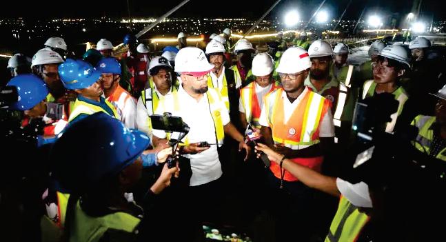 to benefit thousands of Guyanese for generations to come. The new crossing, which is set to be commissionedinamatterof days, consists of four lanes and spans 2.6 kilometres, connecting Nandy Park on theEastBankofDemerarato La Grange on the West Bank,”DPIsaidinitsreport. At its highest point, the bridge is 50 metres, which means Handymax vessels can pass comfortably underneath. With a lifespan of 100 years, the bridge is expected to mitigate current trafficwoesandcongestion. Inhisbriefremarksatthe