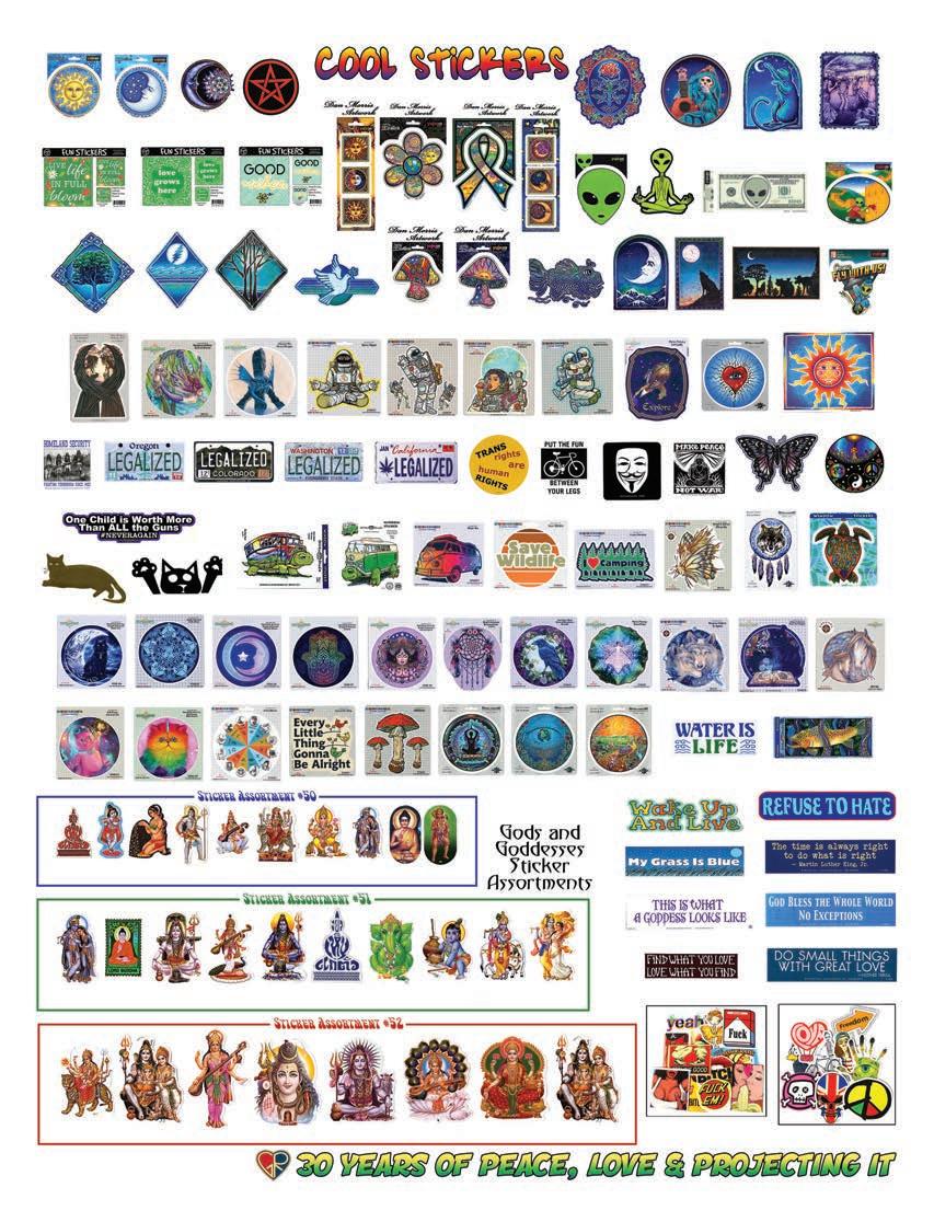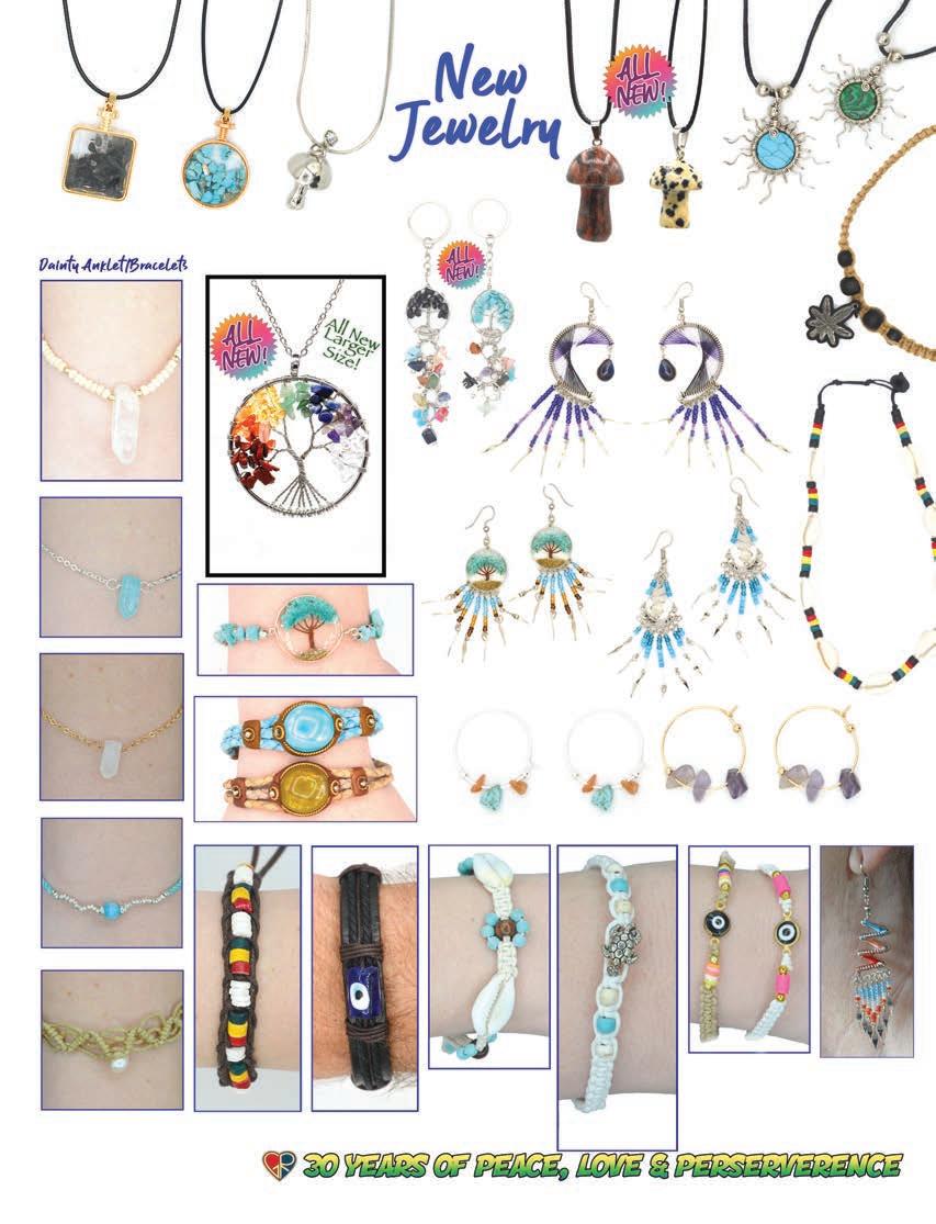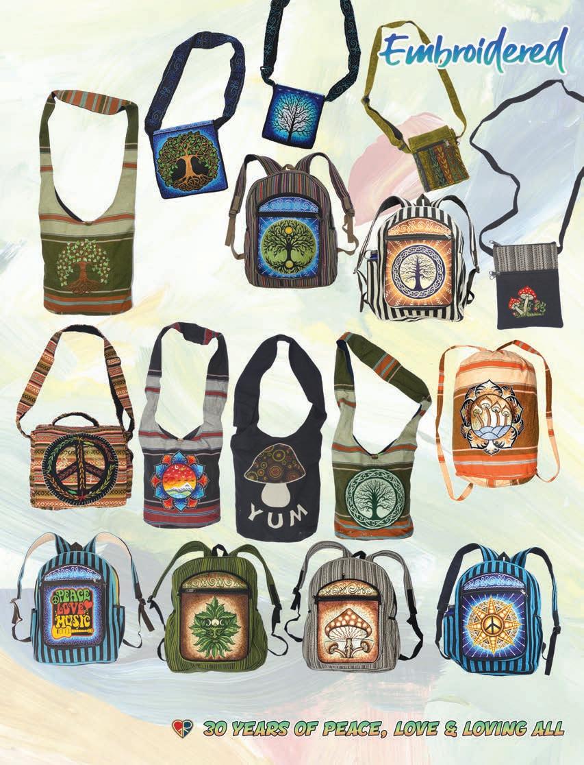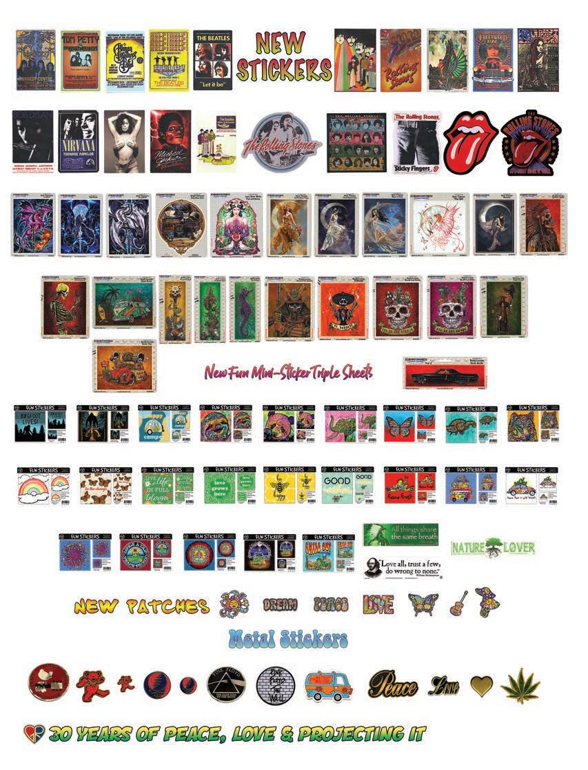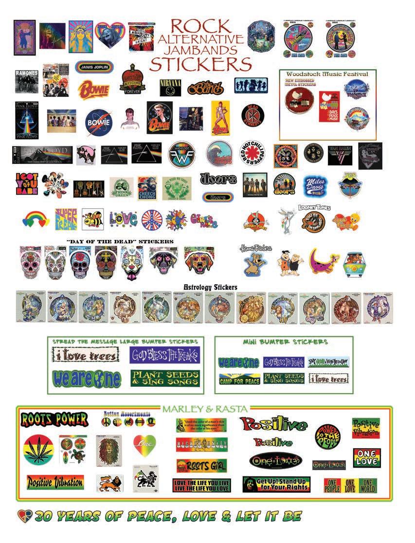 CLOTHING 2-6 New! Clothing & Accessories 7 Denim Digs 8 Velvet Finery 9 Cool Wool Gear 10-11 New! Outrageous Outwear 12-13 Homegrown Fashions 14-15 Mushroom Burst Prints Fashions 16-17 Rayon Silk & Sari Designs 18 Bu er y Prints 62-63 Love Light Zen Wear 64-65 Crochet Array 66 Screen Print Fashions GRATEFUL GIFTS 24-31 New! O cially Licensed Grateful Dead by Gypsy Rose 35 Fleece Throws 36-37 New! Grateful Gifts 40-41 New! Shakedown Street 42 New! Game Night ACCESSORIES 30-31 Hemp Gear 54-55 Socks, Socks, Socks 56 Bandana Madness 57 Hats/Lids for Your Head 58-59 Sarongs, Scarves & More 119-120 Cool Shades GIFTS 38-39 Kind Needs 121 New! Incense Burners 122-123 New! Incense & Oils 124-125 Incense Burners DECOR 48-51 Dorm Decor-Tapestries 52-53 Freak Flags 59-64 Nostalgic Rock Art -Posters Sepia & Ma ed Art Prints. BAGS 19 New! Cool Bags 20-21 Embroidered Bags 22 Travelin’ Bags 23 Groovy Bags JEWELRY 51 Chakra Jewelry 52-53 New! Home Spun Jewelry 54 New! Fashion Jewelry STICKERS 43 NEW! Stickers & Patches 44 Grateful Stickers 45 Hand Emb. Patches & Bu ons 46 Cool Stickers 47 Rock Stickers 48 Peace Stickers 49 Patches 50 Pin-It