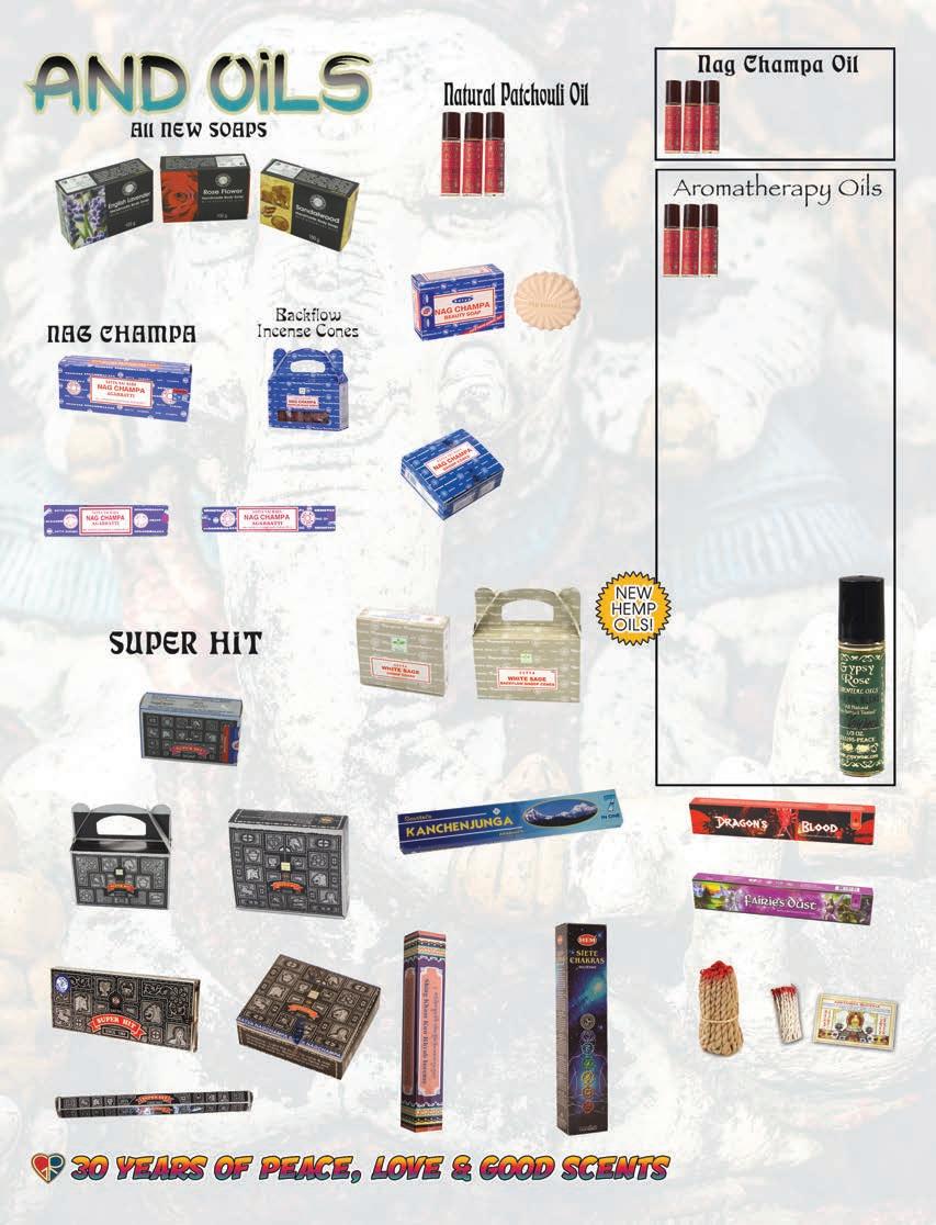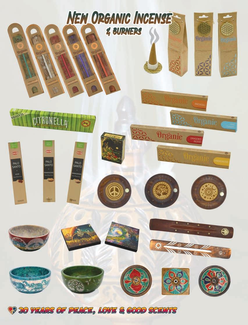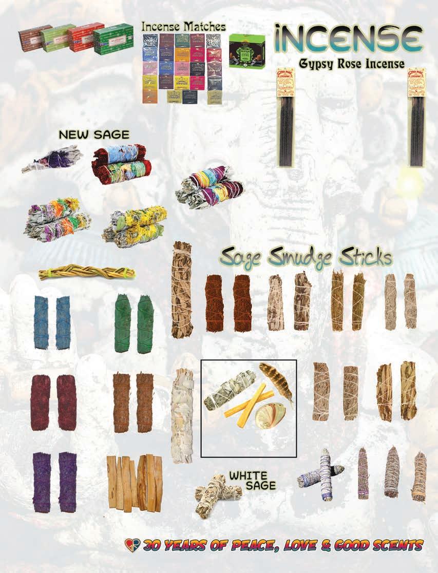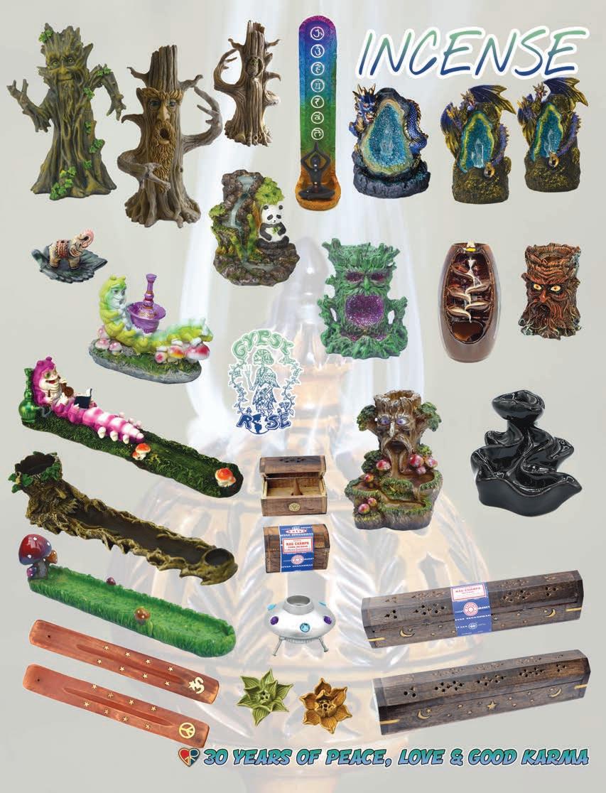 61 1.800.70.PEACE www.gypsyrose.com #3212 SELF CONTAINED STORAGE BOX /BURNER $8.95 AssortedDesigns12”Long. PlainwoodBurner #7710$1.95ea. #77111 BoneInlayWoodIncenseBurner $6.9510.5” Long #89601 Handcarved Wooden Tower Stick/Cone incense Burner $9.95 AssortedDesigns. #89601 12” Tall #97007 Buddha Of Enlightenment Incense Burner $14.95 10” Tall #77115 Lotus of Devotion Clay Incense Burner $8.95 3” X 5” #77116 Lucky Elephant Clay Incense Burner $8.95 2.5” x 3” #97001SkullWithRosesIncenseBurner w/LedEyes$16.9511”Long #97003SleepingFatherWisdom IncenseBurner$22.9511”Long #97017HamsaHandLongIncenseBurner$12.95 Approx:5”tallby10”length #97019BuddhaBurner$12.95Approx:10”length #97020SunIncenseBurner$7.95. Approx:10.5”length #97018 HamsaHandFlatBurner $7.95 Approx:5.25”X4” #99048 Om Of Enlightenment Mandala Hand Painted Ceramic Incense Burner $9.95 Approx 5” diameter #77123 Lucky Elephant Hand Painted Clay Incense Burner $8.95 Approx: 3” x 2.5” #97032 Hamsa Hand Incense Burner $9.95 Approx: 5.25” X 4” #77124 Lucky Elephant Family Clay Incense Burner $7.95 Approx: 3” x 2.5” #7788LucyInTheSkyMirrorIncenseBurner$7.95Approx:10”Long #7704AssortedIncenseBurner$2.95Approx:10”Long #999909 Turqoise&CoralInlayTurtle MetalIncenseBurner $9.95 #999923 Horn Incense Burner $9.95 #999925 Elephant Trunk Up Metal Incense Burner $9.95 #999908 Turqoise&CoralInlayElephantMetalIncenseBurner $9.95 #999907 Sun Moon Metal Incense Burner $9.95 Burn incense within sight. Keep objects away from burning incense. Keep away from children and pets. Only burn on level and sturdy surface. #99347 Cast Iron Cauldron Triple Moon Burner $17.95 Approx: 3-5 “ inches #99358 7 Chakra Brass Cauldron Incense Burner $29.95 Approx: 4.5” inches #93122 Magic Lamp Back ow Burner $14.95 #7792 CelestialAshcatcherIncenseBurner $5.95Approx:11”inches #7784 11InStoneElephantAshcatcherIncenseBurner $19.95Approx:11”inches #7796 7ChakraStoneAshcatcherBurner $22.95Approx:11”inches #97297 Unicorn Back ow Burner $26.95 Approx: 7” X 7” #97314 Mushroom Stick Burner $8.95 Approx: 5.25” X 5” #97324 Chesire Cat Back ow Burner $26.95 Approx: 7” X 4.25”