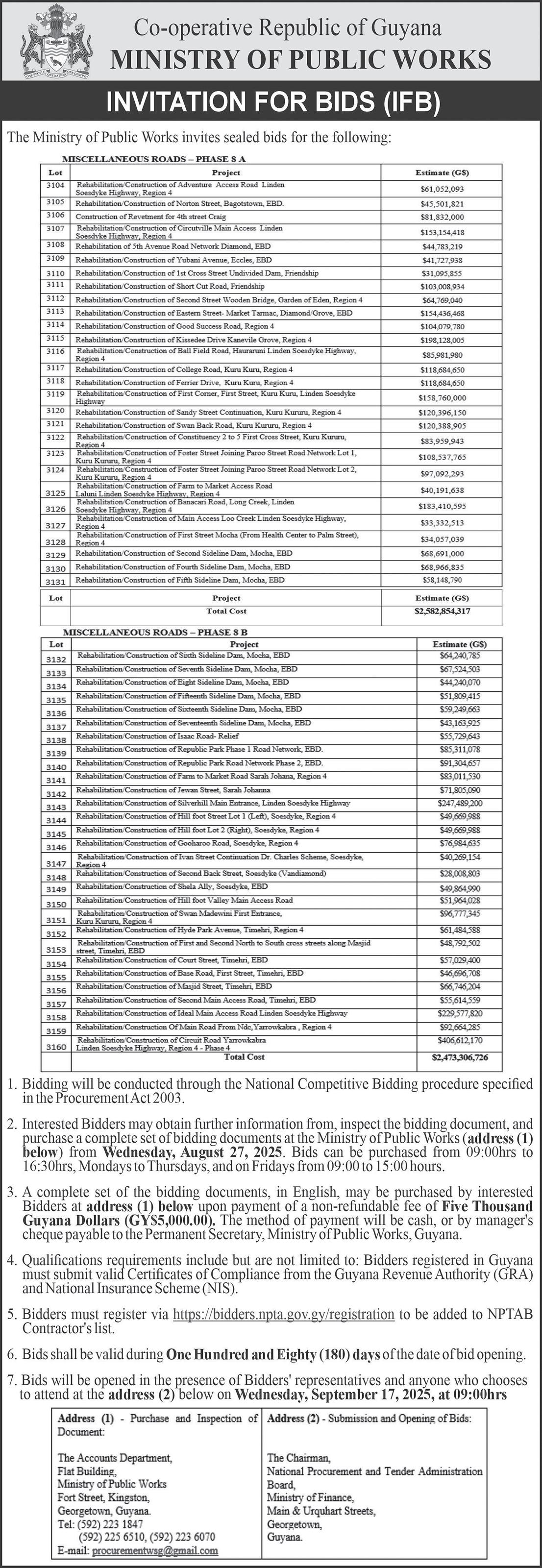 The Berbice Bridge will be closed to vehicular traffic on: Monday, August 25 –05:10h–06:40h and Tuesday, August 26 – 05:40h–07:10h.
