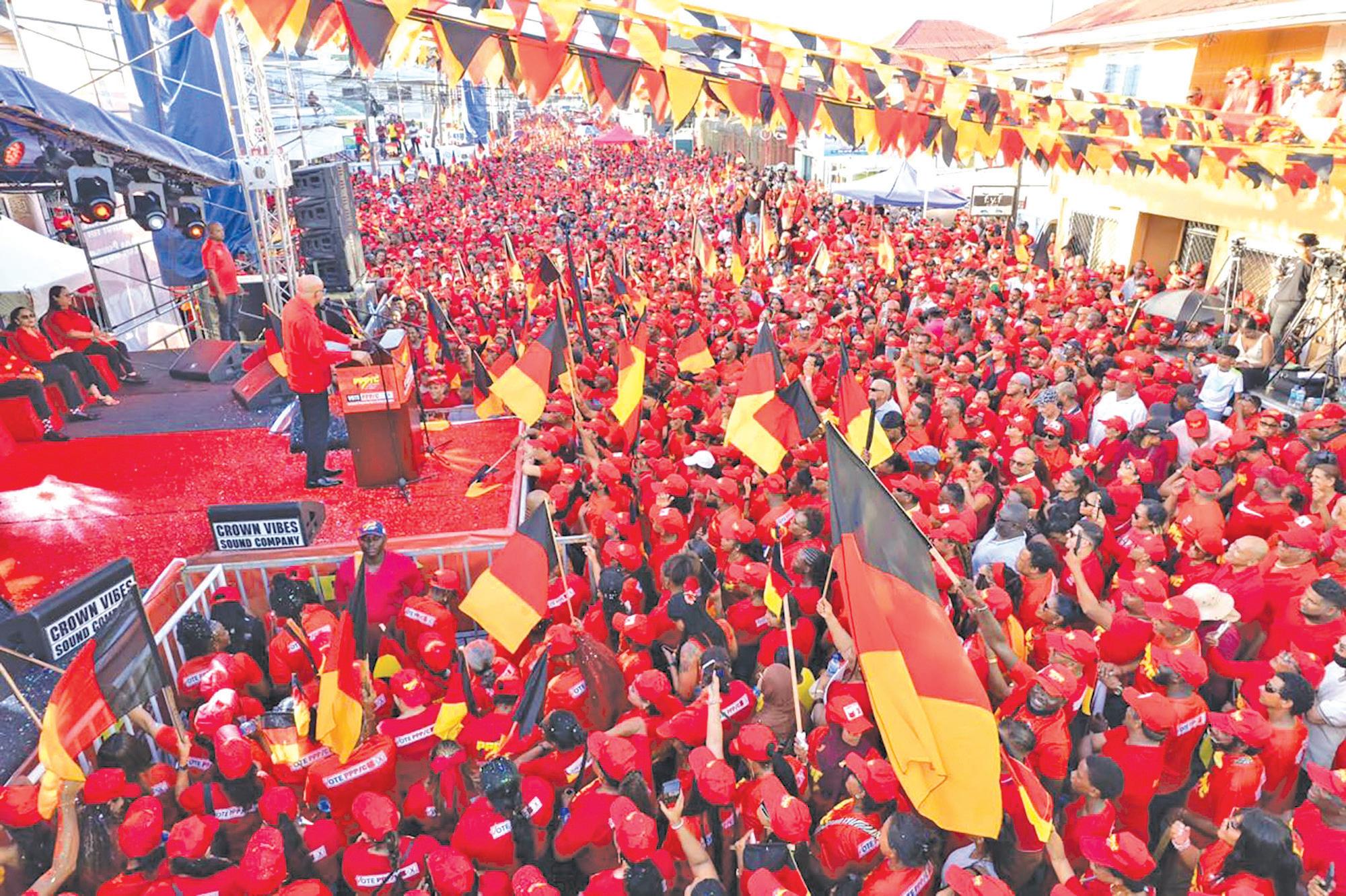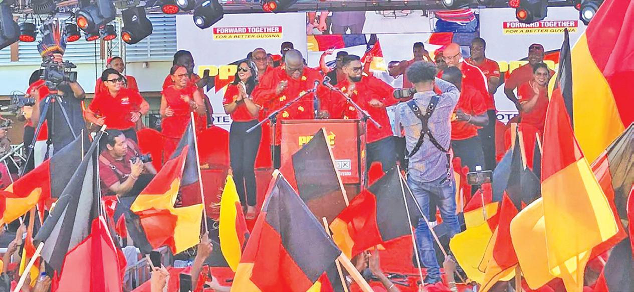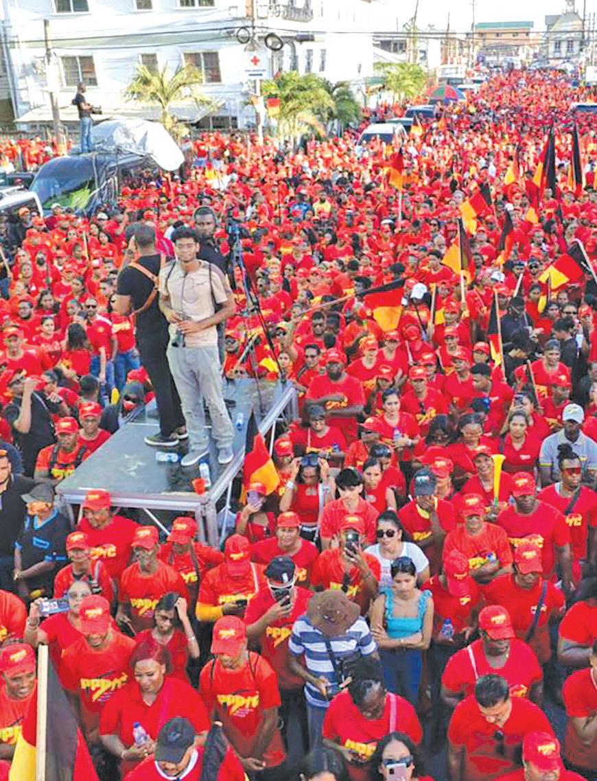 is the red army… Come September 1, we will sweep the polls like never before in the history of Guyana,” President Ali declared to thundering roars from the thousands of PPP/C supporters who travelled to Kitty for Sunday’s launch. “We will not just win, we will make history,” he added, urging supporters to ensure that on election day, “you mark your ‘x’ next to the cup”. By doing that, “you will be voting for every Guyanese”, the President said.