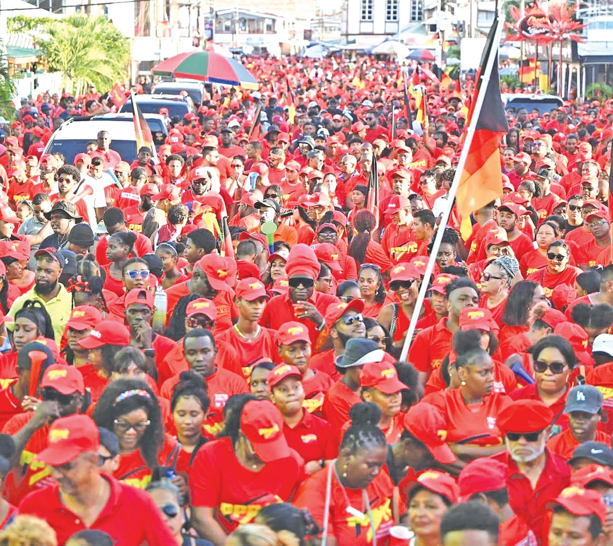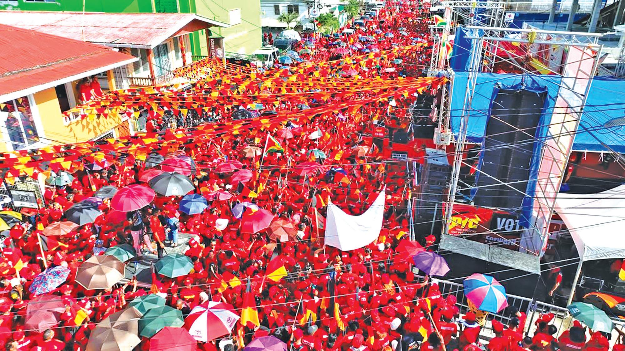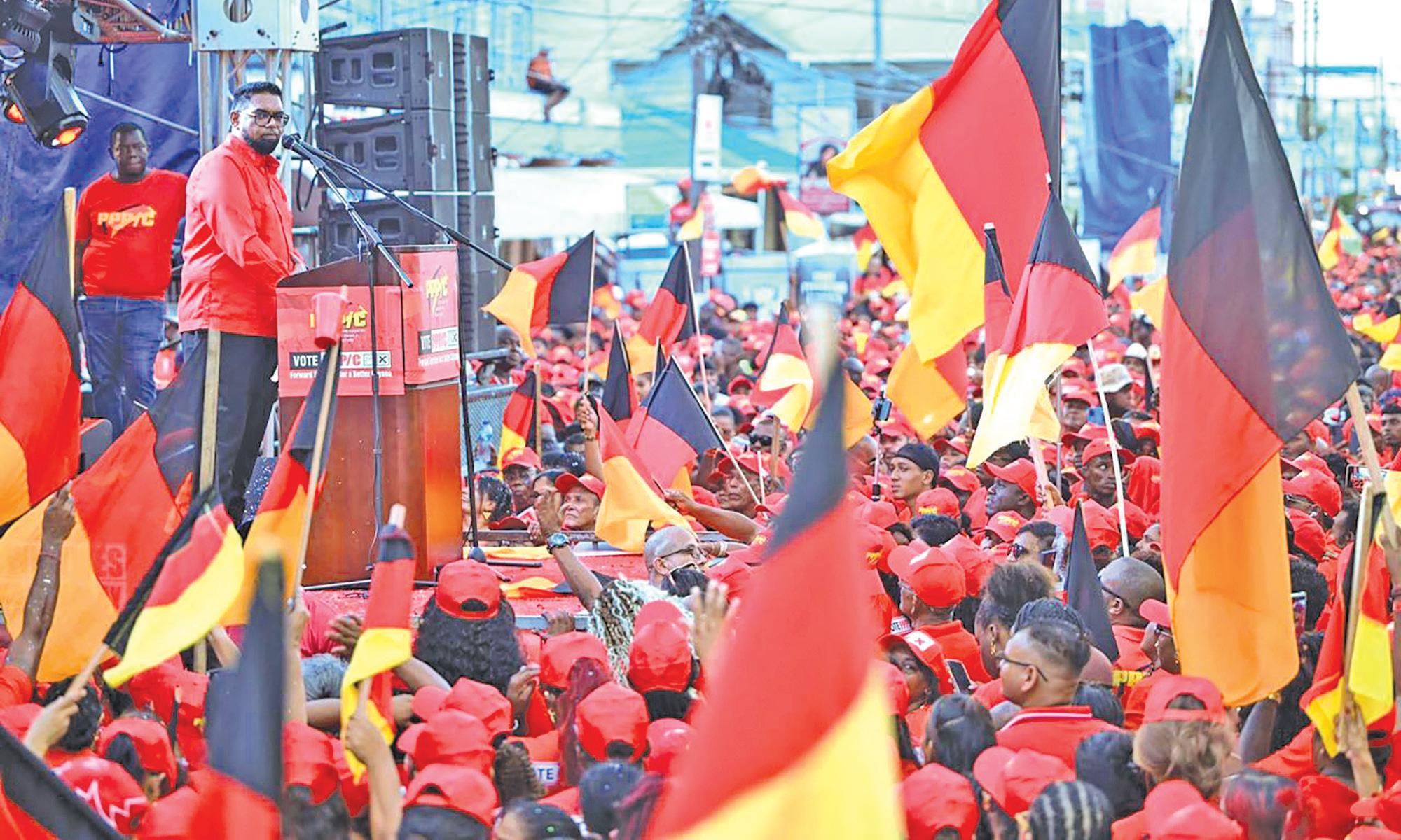 is the red army… Come September 1, we will sweep the polls like never before in the history of Guyana,” President Ali declared to thundering roars from the thousands of PPP/C supporters who travelled to Kitty for Sunday’s launch. “We will not just win, we will make history,” he added, urging supporters to ensure that on election day, “you mark your ‘x’ next to the cup”. By doing that, “you will be voting for every Guyanese”, the President said.