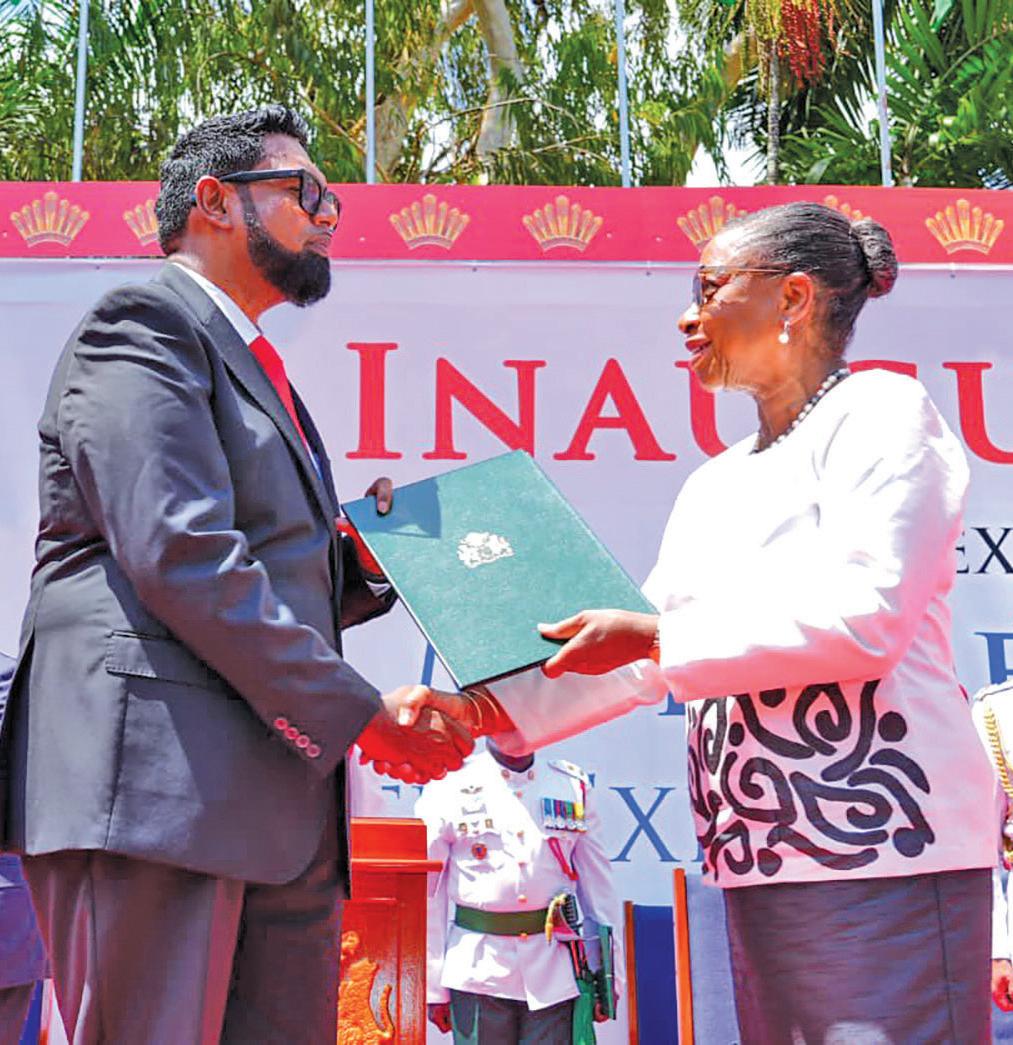 Dr Ali took his oath of office, which was administered by the Chancellor of the Judiciary (ag), Justice Roxane George, at about 10:20h before a packed gathering on the lawns of State House in Georgetown, where his inauguration ceremony was held, and culminated with a grand cultural presentation and brunch at the Esplanade, Kingston Seawalls.