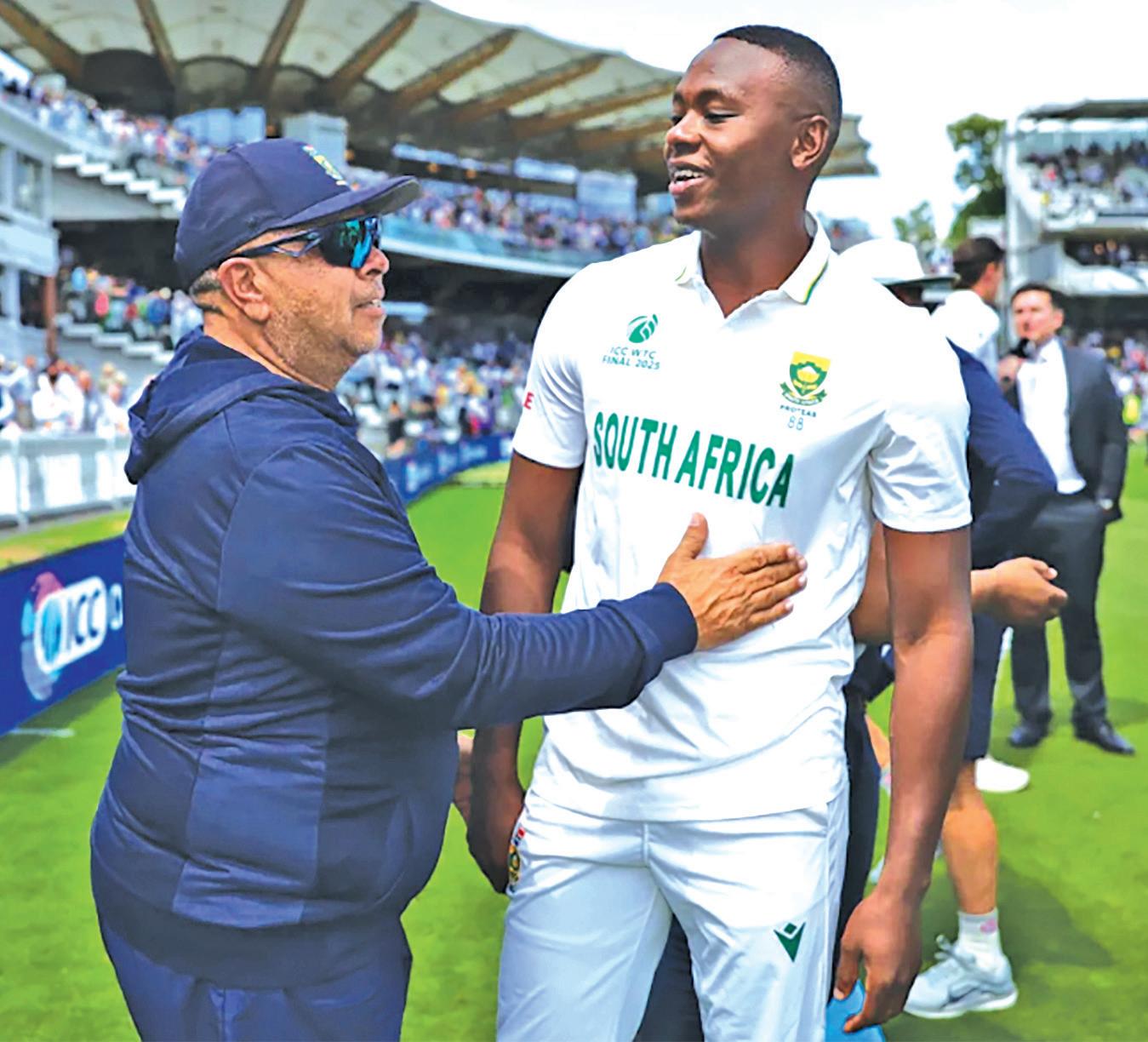 A delighted Shukri Conrad and Kagiso Rabada after the win