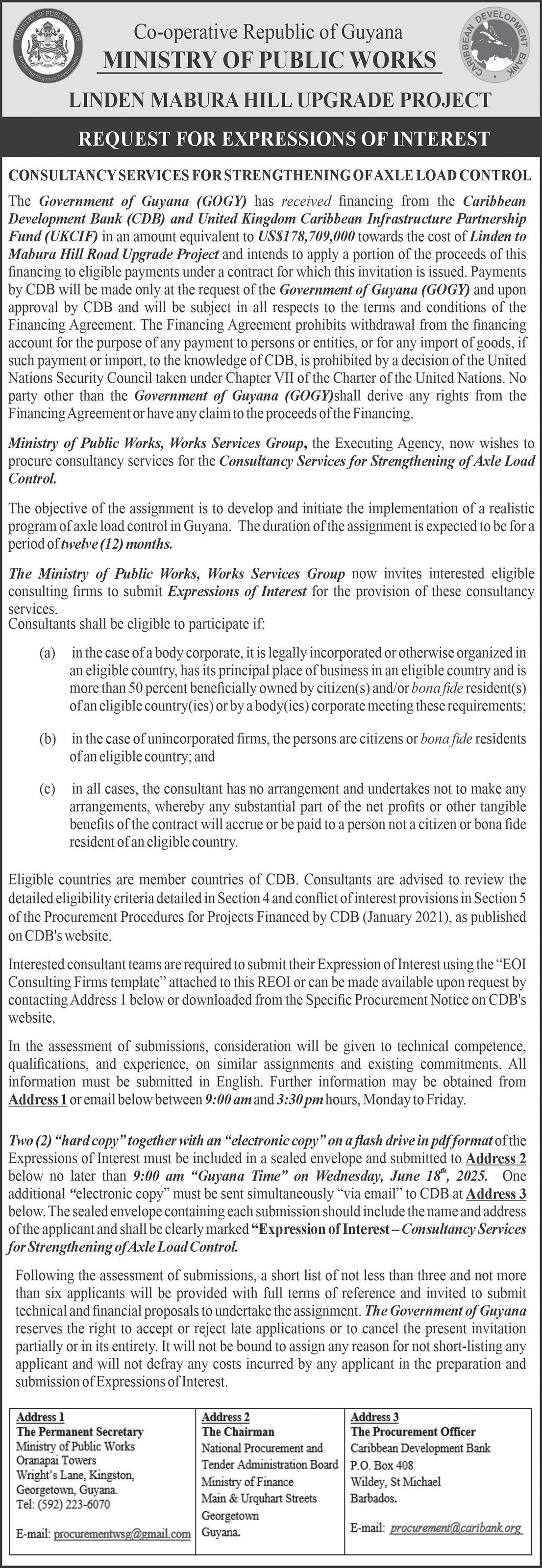 The Demerara Harbour Bridge will be closed to vehicular traffic on: