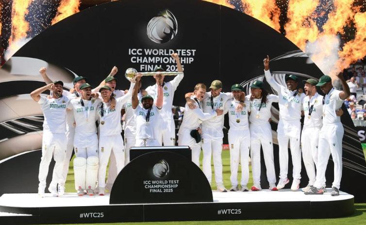 Temba Bavuma and the team celebrate the WTC win from the dressing room