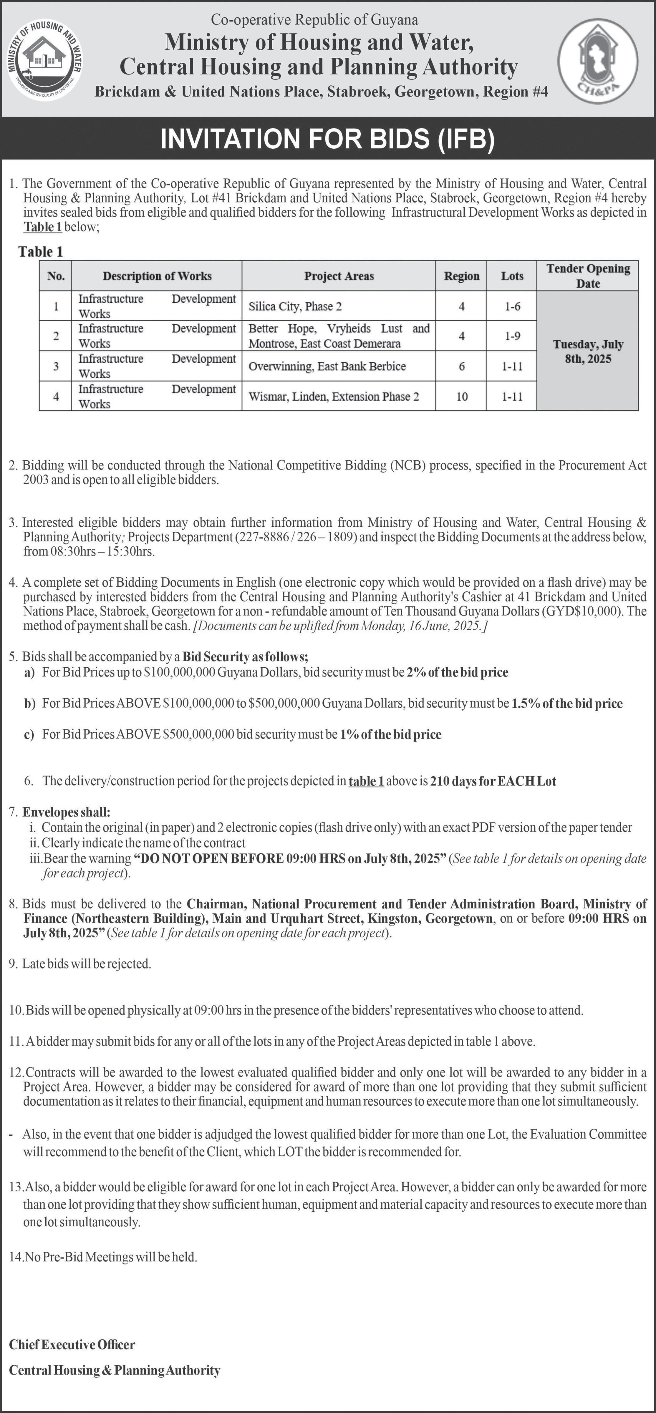 Climate resilient infrastructure refers to works that are designed and built to weather the impacts of climate change, including flooding and temperature increases. With the coastal regions of Guyana lying below sea level, there is an increased focus on such infrastructure.