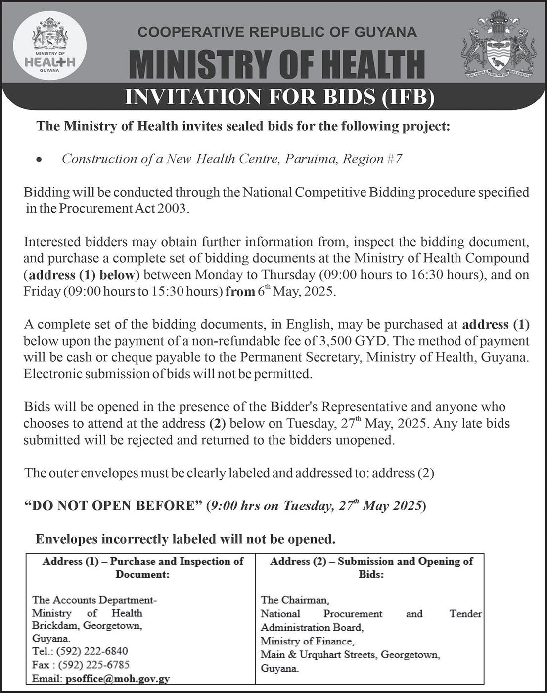 Parika and Supenaam departure times –05:00h, 10:00h-12:00h, 16:00h, 18:30h daily