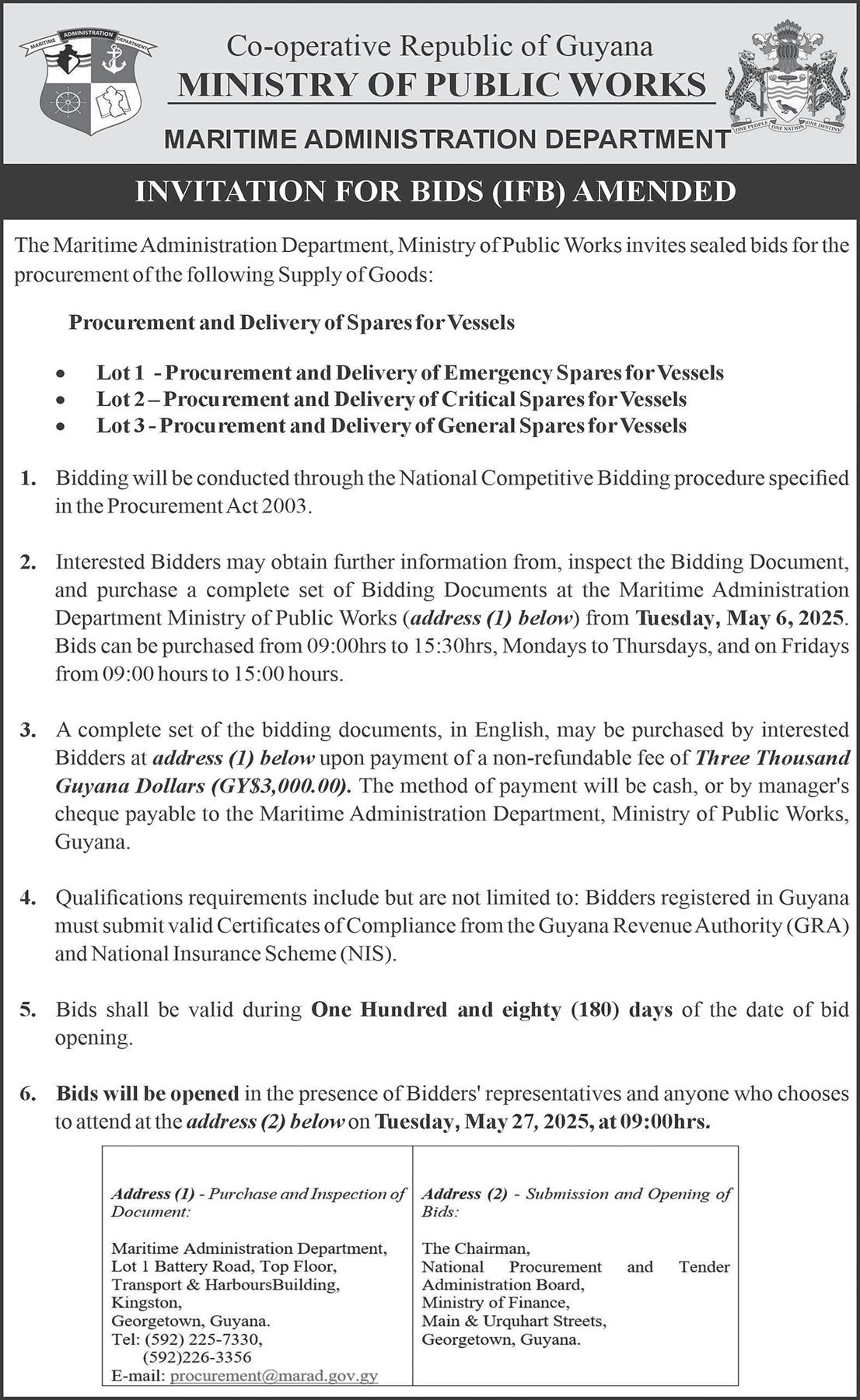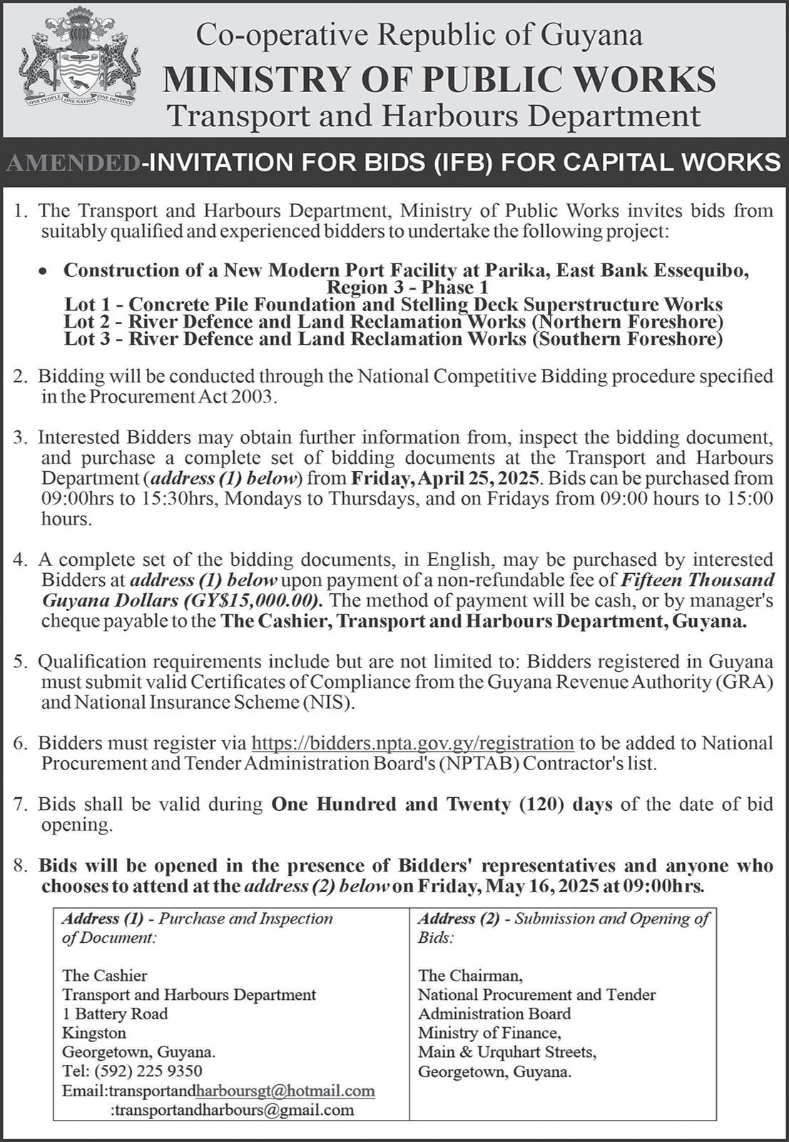 The Demerara Harbour Bridge will be closed to vehicular traffic on: