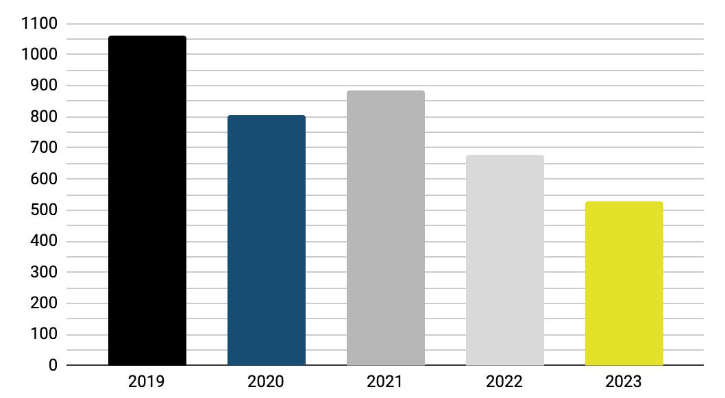 10 SOUTH SANTA BARBARA COUNTY MARKET REPORT | JUNE 2023 - southSANTA BARBARA COUNTY - homes | estates | puds (excludes condos)YTD SALES VOLUME COMPARISON Information Deemed Reliable But Not Guaranteed / Provided by Fidelity National Title/Santa Barbara. 542 370 745 452 553