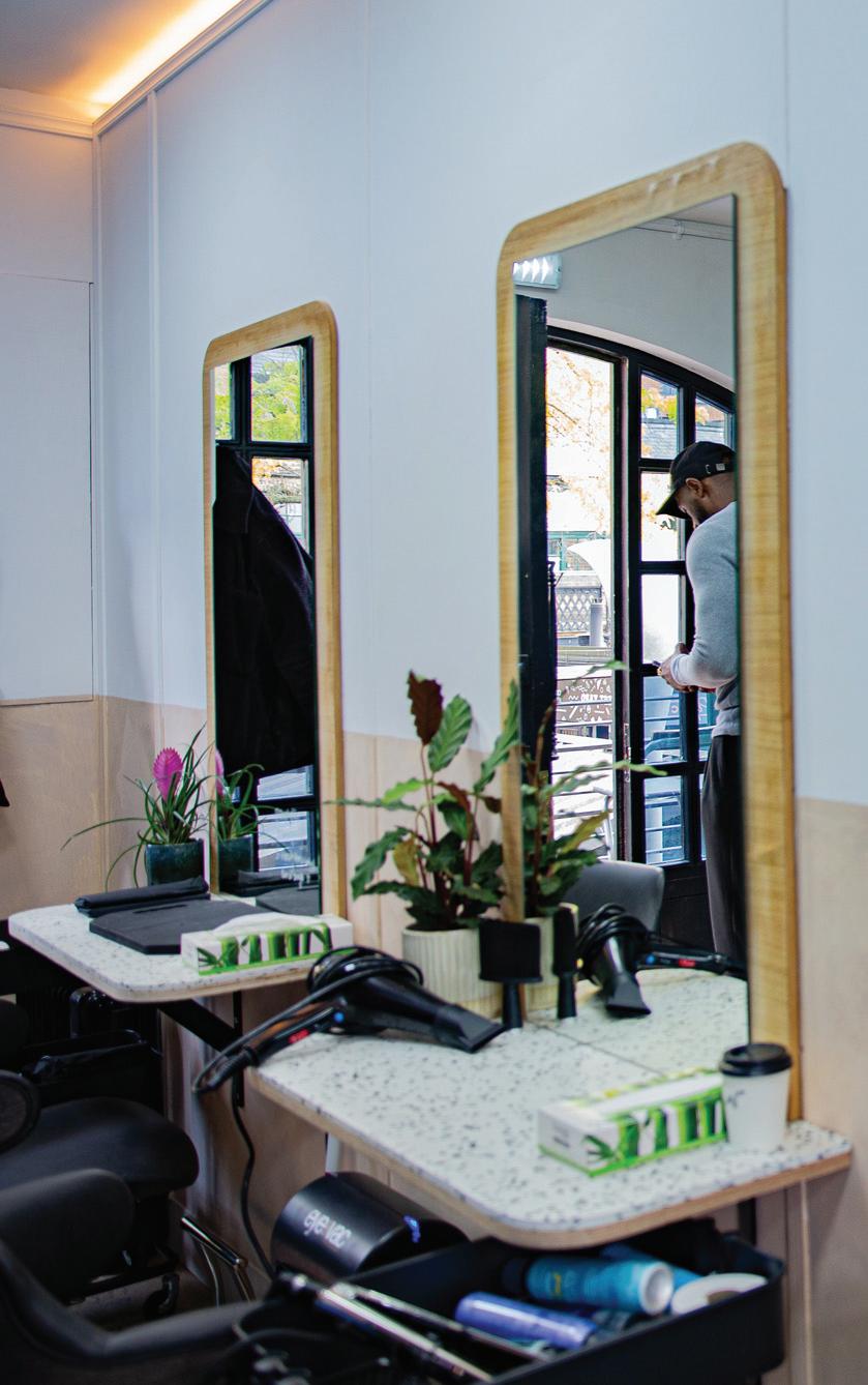 Sustainability is at the heart of our design and our purpose. It comes through in various focal points within the salon and our services –from recycled breathable cork flooring to recycled plastic worktops and wooden frames on the mirrors.