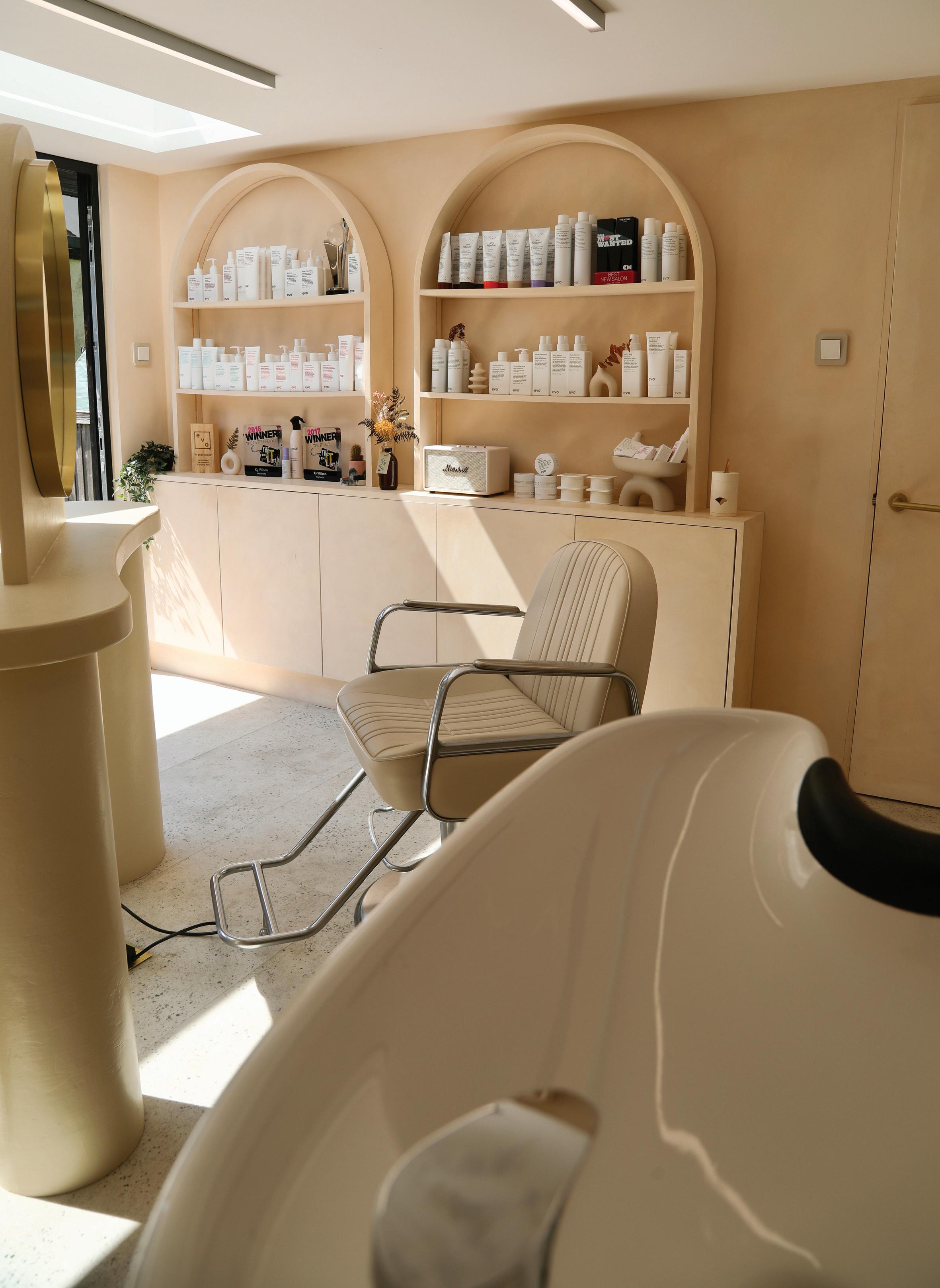 Do you have any curated pieces or special features in the home salon? Well, everything from the build of the structure and the backwash built from Smith & Goat to the mirror station built by Sophie Watson has all been curated.