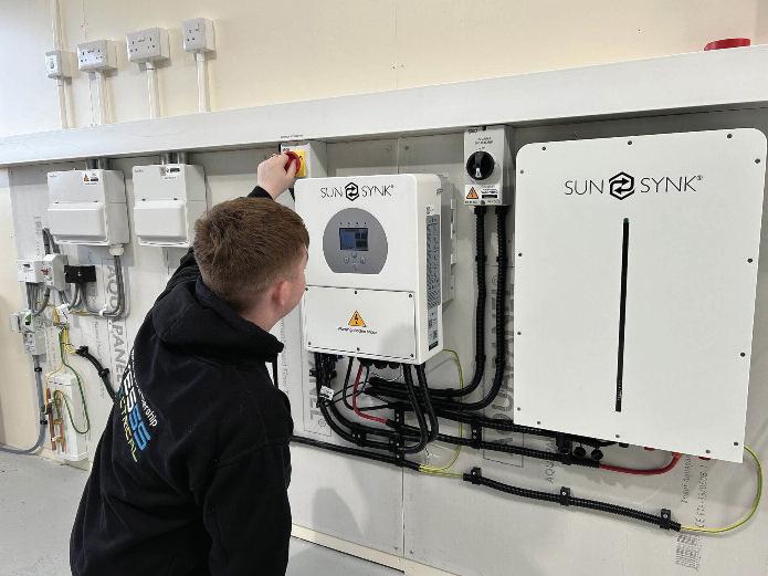 Employees can complete fundamental training linked to air source heat pumps, solar thermal, solar photovoltaic, and other key electrical technologies, such as electrical vehicle charging and battery storage