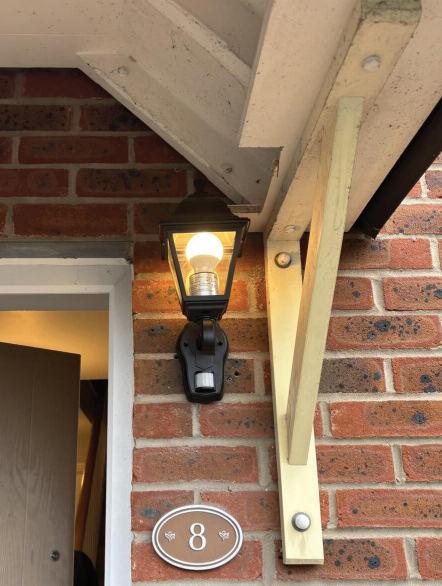 ERIC WILLIAMS: I WAS CALLED OUT TO INVESTIGATE AN OUTSIDE LIGHT, RECENTLY FITTED AS A REPLACEMENT, IN A RENTAL PROPERTY. THE WORK HAD BEEN CARRIED OUT BY A “HANDYMAN” WHO APPEARED TO HAVE DIFFICULTY IN IDENTIFYING WHICH CONDUCTORS WENT WHERE HE’D ALSO CHOSEN A LIGHT THAT WAS TOO LARGE FOR THE LOCATION AND CUT A LARGE LUMP OUT OF THE PORCH STRUCTURE TO ACCOMMODATE IT THIS CAN BE SEEN IN THE THIRD PHOTO SHOWING THE NEW LIGHT IN PLACE BUT ALSO THE SECTION OF PORCH MISSING ABOVE