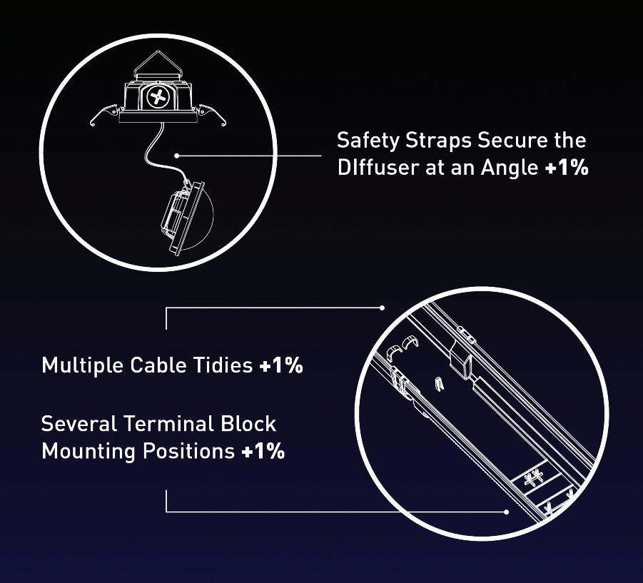 The modular design enhances product sustainability as microwave sensors and emergency packs can be retrofitted in-house, by distributors or contractors without the need for tools Clear markings on the gear tray guide installation, with easy wiring via colour-coded connectors