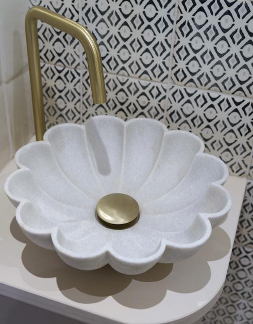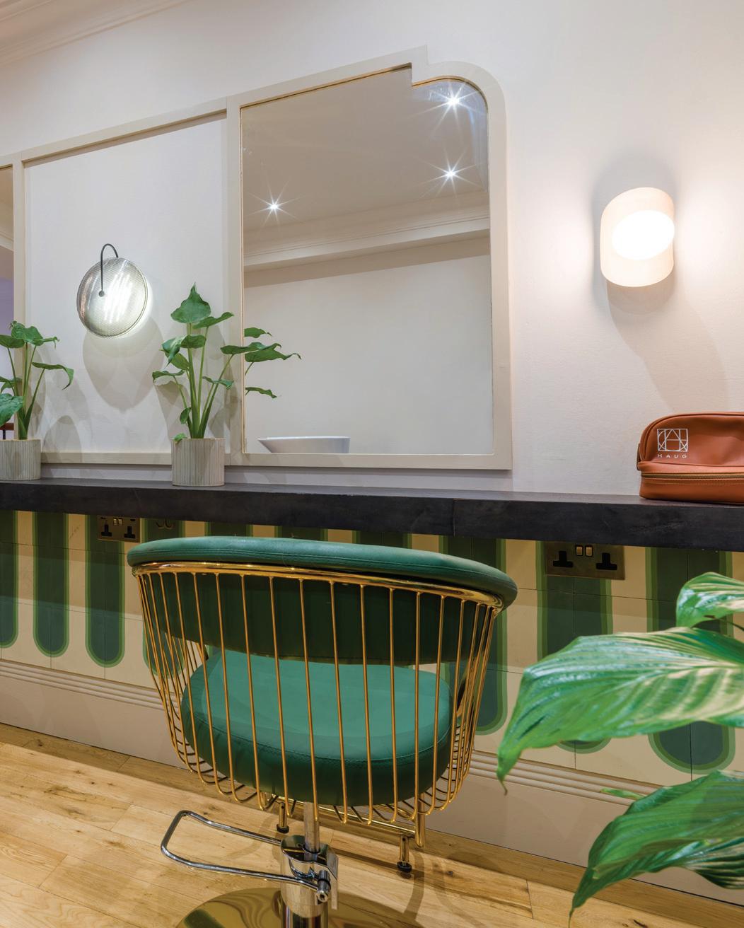 What’s more, there are unique tile patterns and finishes throughout the salon, such as the warm concrete surface on the Haus Bar and the floral-shaped sink in the bathroom.