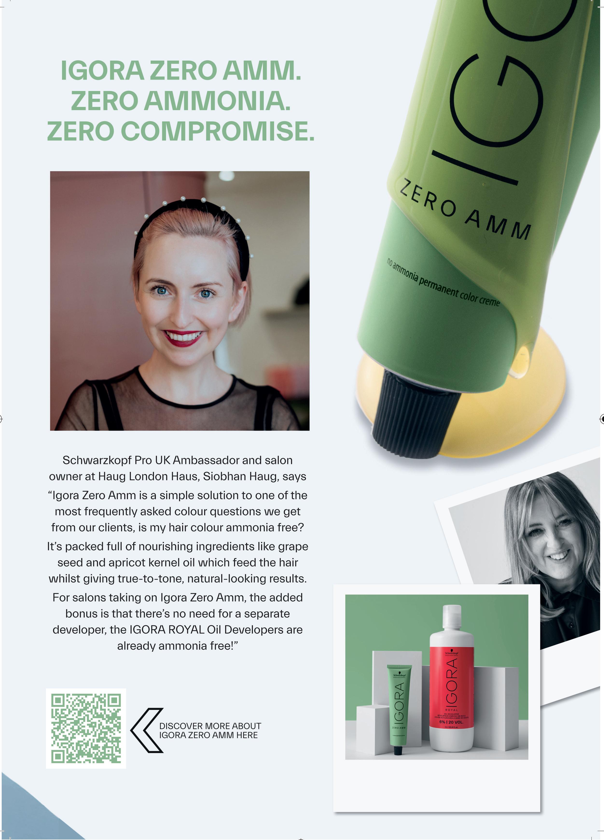 IGORA ZERO AMM from Schwarzkopf Professional is a new permanent colour line, free from ammonia and offering natural-looking results. Formulated with Phytolipid Technology and vegan ingredients, experience 46 true-to-tone shades all wrapped up in sustainable packaging –delivering the same reliable IGORA performance you love, minus the ammonia.
