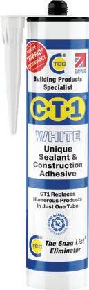 CT1 with revolutionary TRIBRID® technology is a unique sealant and construction adhesive that replaces numerous products from just one tube. It is widely recognised as the ultimate technological advancement in bonding and sealing and offers a superior adhesion on virtually any material, without the need for additional fixings.