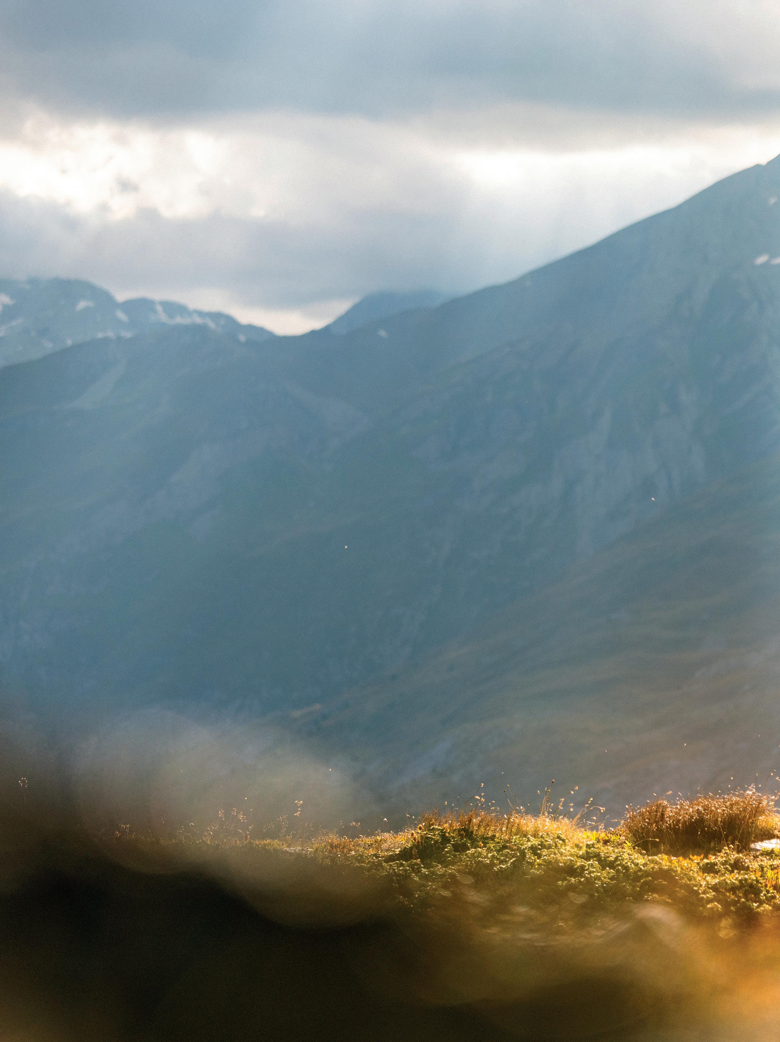 Il respiro affannato. I polmoni che lottano alla ricerca d’aria. Il cuore che rimbomba nelle orecchie. Le mani sulle ginocchia – il sentiero è molto più ripido di quanto non avessi pensato. Attraversa prati verdi mentre montagne rocciose ci circondano. Le cavallette saltano nervosamente nell’erba. Delle mucche ci osservano passare, pigre. Api laboriose passano da un fiore all’altro. Ogni cosa è estremamente viva. E tuttavia, finché non ti fermi a guardare da vicino, tutto appare immobile.