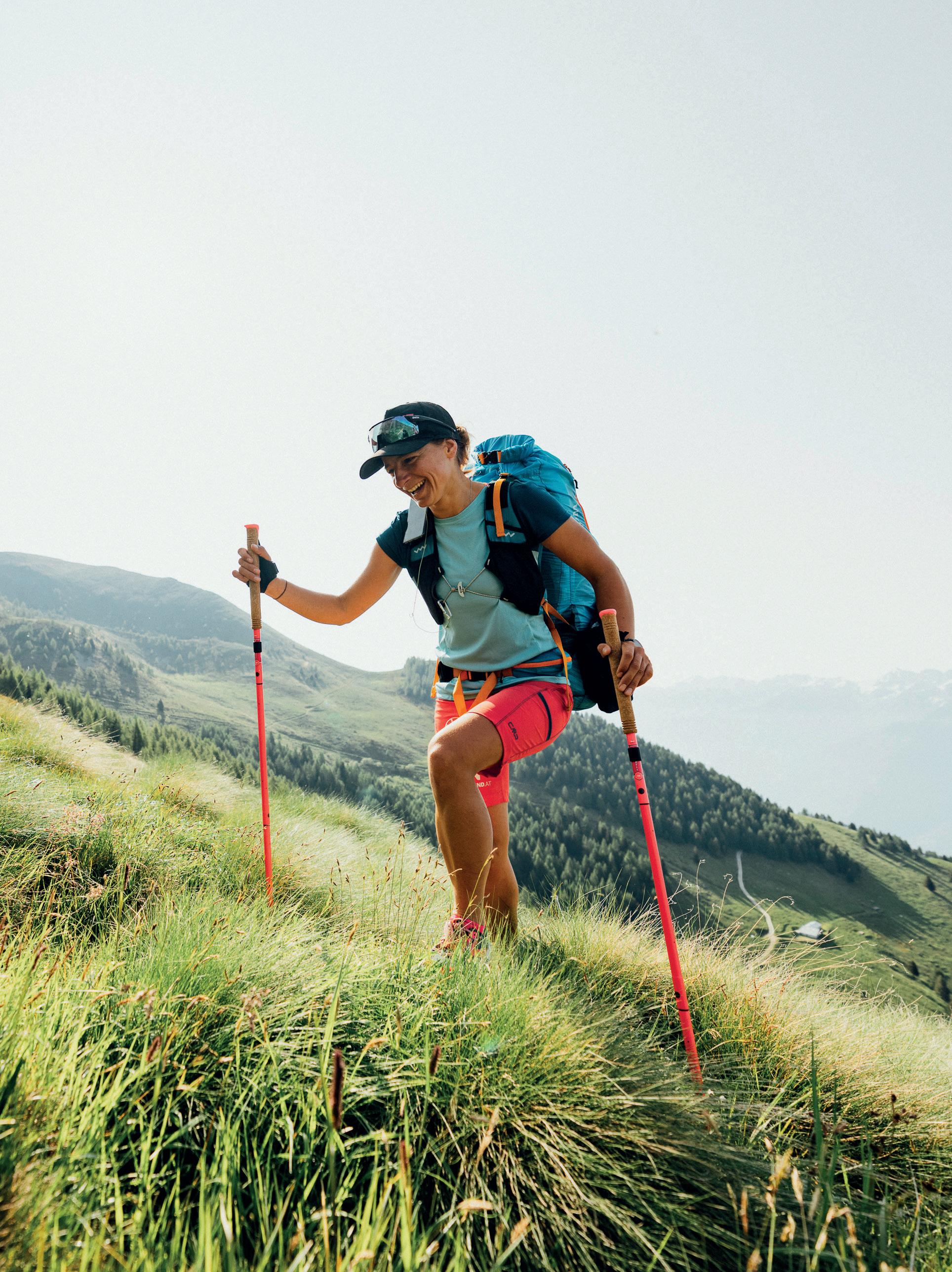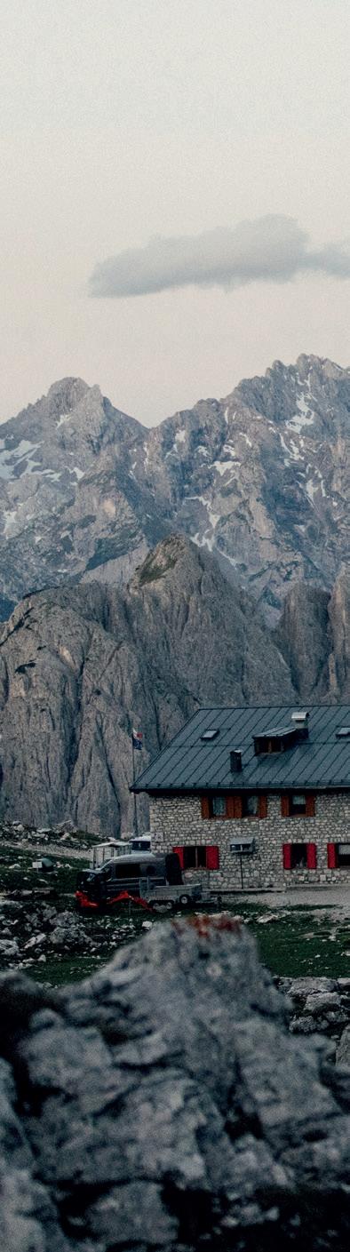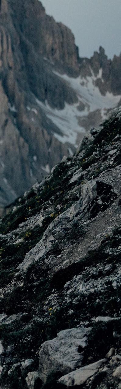 economico prima, e delle Olimpiadi di Torino del 2006 poi. La monocoltura dello sci alpino ha trasformato tanti posti come Sestriere in caroselli d’inverno, e in luoghi spettrali d’estate, con le ruspe, gli skilift fermi, i condomini vuoti. Per rendere le montagne attraenti non è necessario disseminarle di costose e impattanti infrastrutture: la natura le ha già dotate di tutto ciò che serve. Cosa che tante località alpine ancora non sembrano aver capito. Sono temi di cui parlo con Aymo, che queste dinamiche le vive quotidianamente a casa sua, in Valle d’Aosta. Tralasciando il paese, l’ambiente attorno a Sestriere è incantevole e perfetto per allenarsi secondo il nostro stile, che si potrebbe riassu-